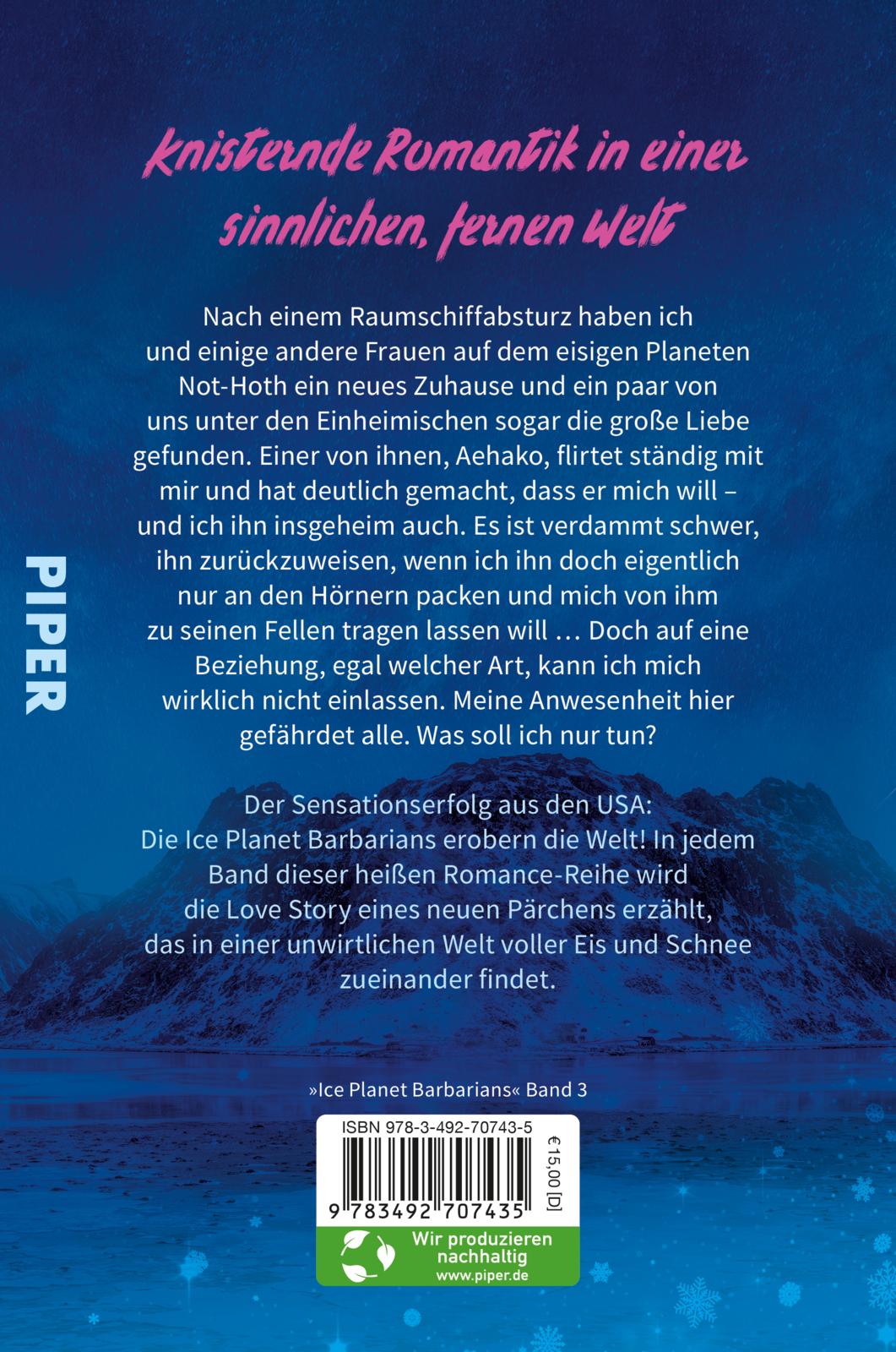Nach einem Raumschiffabsturz haben ich und einige andere Frauen auf dem eisigen Planeten Not-Hoth ein neues Zuhause und ein paar von uns unter den Einheimischen sogar die große Liebe gefunden. Einer von ihnen, Aehako, flirtet ständig mit mir und hat deutlich gemacht, dass er mich will – und ich ihn insgeheim auch. Es ist verdammt schwer, ihn zurückzuweisen, wenn ich ihn doch eigentlich nur an den Hörnern packen und mich von ihm zu seinen Fellen tragen lassen will … Doch auf eine Beziehung, egal welcher Art, kann ich mich wirklich nicht einlassen. Meine Anwesenheit hier gefährdet alle. Was soll ich nur tun?