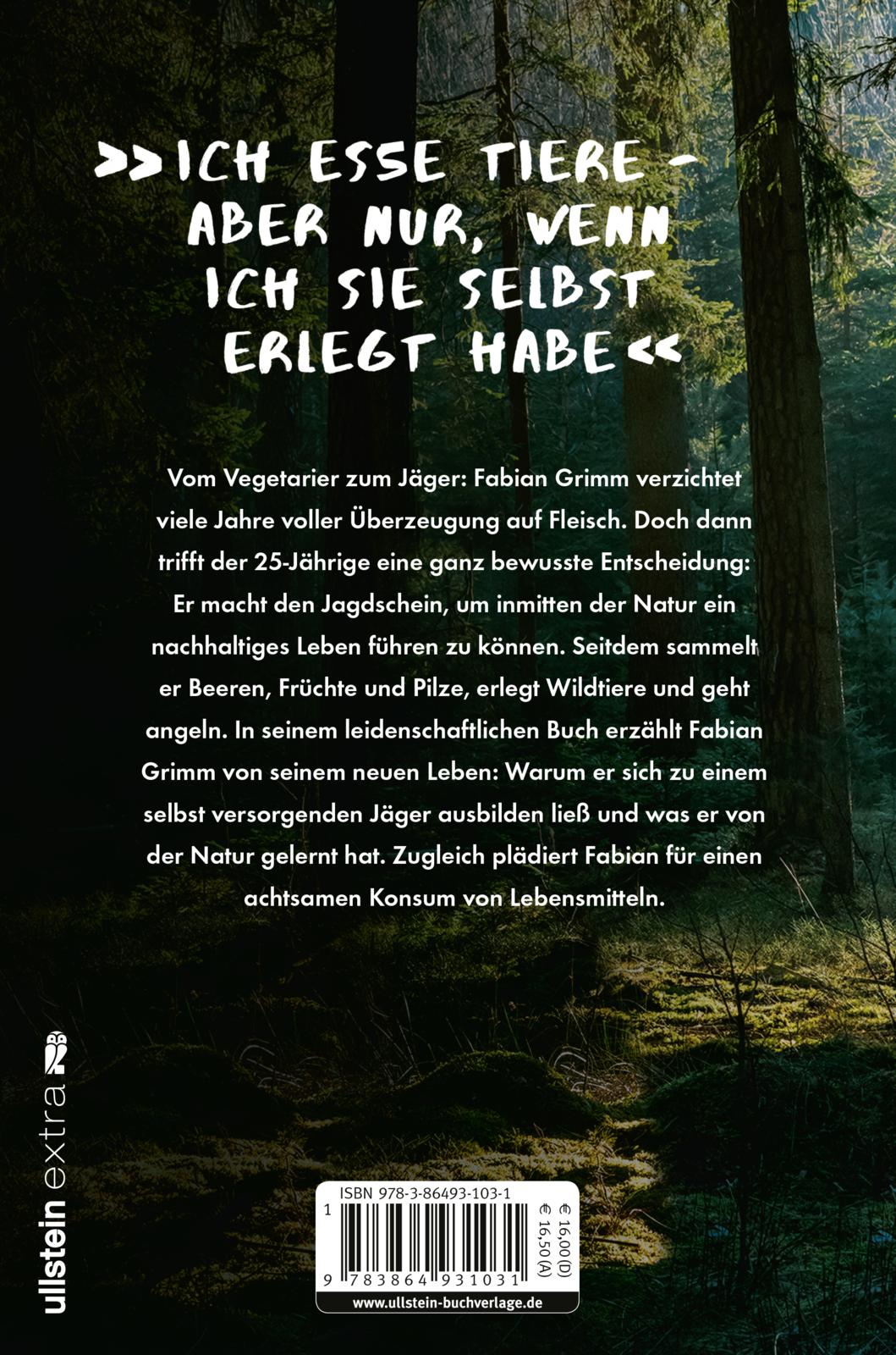 Fabian Grimm liebt die Natur und die Stille im Wald, er weiß alles über die Pflanzen und Tiere dort. Er war lange Zeit Vegetarier, nun isst er wieder Fleisch. Eine ganz bewusste Entscheidung. Nur, wenn er das Tier vorher selbst getötet hat, isst er es auch. In seinem Buch plädiert Fabian Grimm für einen achtsamen Konsum von Lebensmitteln und erzählt von seinem neuen Leben. Er geht durch den Wald, sammelt Beeren, Pilze und Pflanzen, jagt Wild, zerlegt es und verarbeitet alles: Fleisch, Knochen und Innereien – Für ihn eine Frage des Respekts.