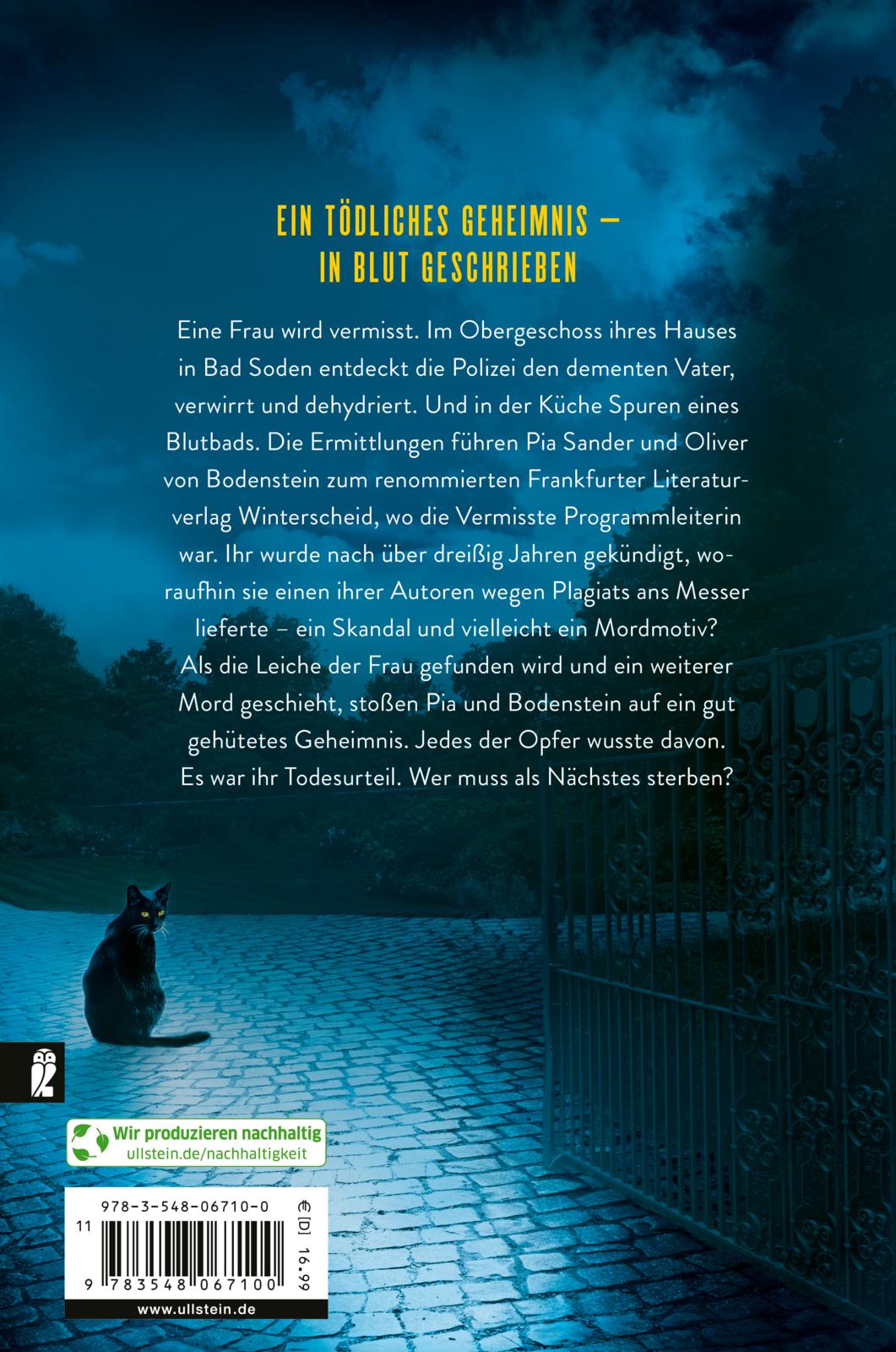 Eine Frau wird vermisst. Im Obergeschoss ihres Hauses in Bad Soden findet die Polizei den dementen Vater, verwirrt und dehydriert. Und in der Küche Spuren eines Blutbads. Die Ermittlungen führen Pia Sander und Oliver von Bodenstein zum renommierten Frankfurter Literaturverlag Winterscheid, wo die Vermisste Programmleiterin war. Ihr wurde nach über dreißig Jahren gekündigt, woraufhin sie einen ihrer Autoren wegen Plagiats ans Messer lieferte – ein Skandal und vielleicht ein Mordmotiv?