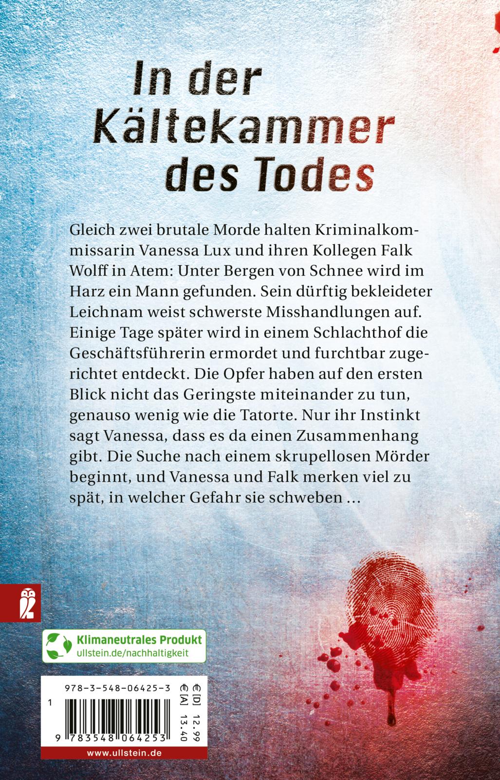 Gleich zwei brutale Morde beschäftigen Kriminalkommissarin Vanessa Lux und ihren Kollegen Falk Wolff: Unter Bergen von Schnee wird im Harz ein Mann gefunden. Sein dürftig bekleideter Leichnam weist schwerste Misshandlungen auf. Einige Tage später wird in einem Schlachthof die Geschäftsführerin ermordet und furchtbar zugerichtet entdeckt. Die Opfer haben offensichtlich nicht das Geringste miteinander zu tun, genauso wenig wie die Tatorte. Oder vielleicht doch? Irgendetwas sagt Vanessa, dass es eine Verbindung zwischen den beiden Taten gibt ...