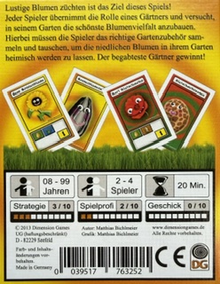 Lustige Blumen züchten ist das Ziel dieses Spiels! Jeder Spieler übernimmt die Rolle eines Gärtners und versucht, in seinem Garten die schönste Blumenvielfalt anzubauen. Hierbei müssen die Spieler das richtige Gartenzubehör sammeln und tauschen, um die niedlichen Blumen in ihrem Garten heimisch werden zu lassen. Der begabteste Gärtner gewinnt!