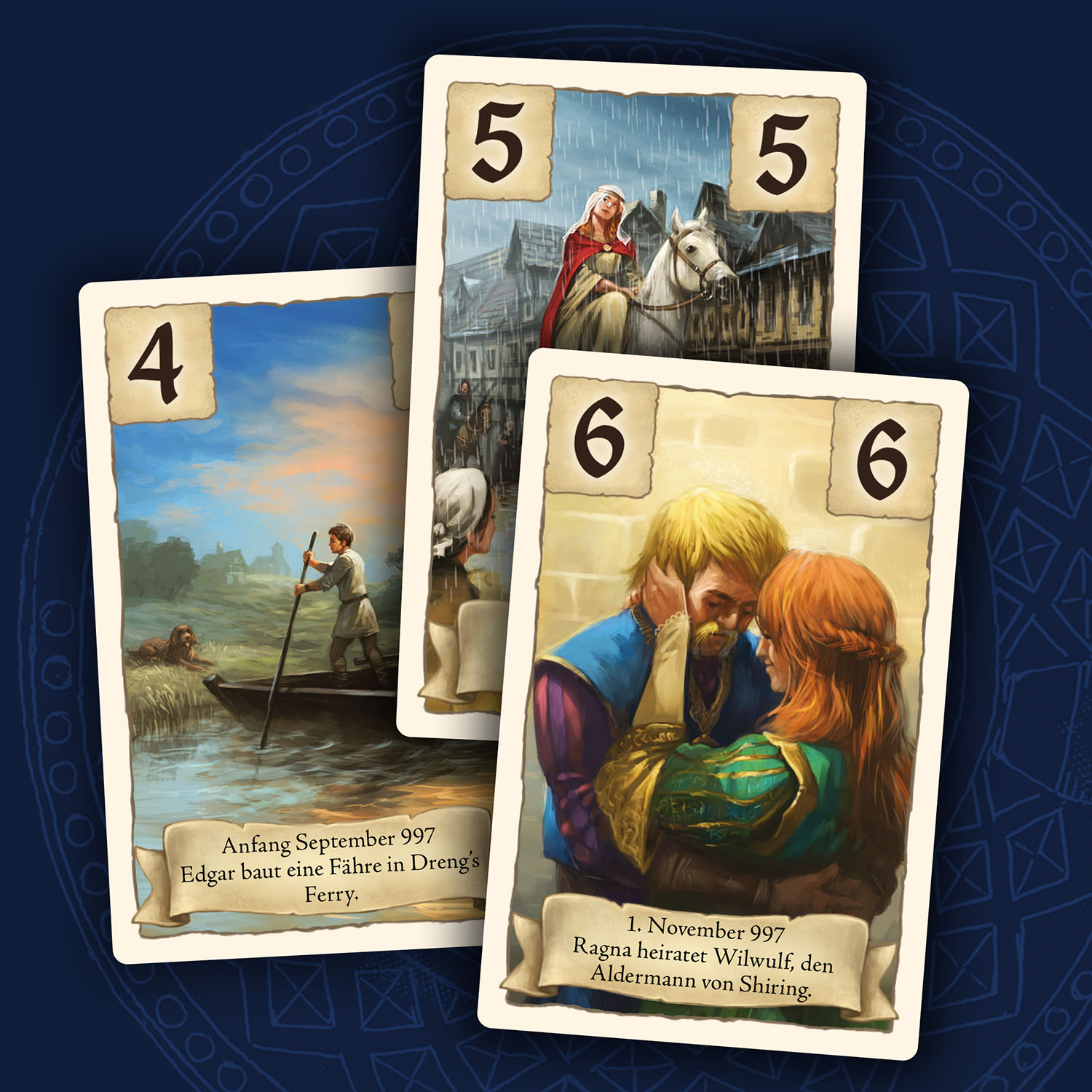 Das Spiel zum neuen Roman „Kingsbridge“ von Erfolgsautor Ken Follett. Attraktives Kartenspiel mit einfachen Regeln. Zusätzlich mit spannender Solo-Variante. Nach dem Überfall der Wikinger im Jahre 997 erfahren die 1-6 Spieler ab 10 Jahren in diesem Kartenspiel, wie die Stadt Kingsbridge aus dem weltberühmten Bestseller-Roman „Die Säulen der Erde“ von Ken Follett entstand. Mit Hilfe von Storykarten, die nach der zeitlichen Abfolge der Buchvorlage ausgelegt werden, werden die Spieler ins englische Mittelalter hineingeführt. Auf diesen Karten wird die Handlung des Romans anschaulich dargestellt. Personenkarten mit ihren besonderen Fähigkeiten unterstützen dabei. Mit einfachen Regeln und atmosphärisch gestalteten Spielkarten ist das Kartenspiel sofort startklar! Eine besondere Solo-Spielregel ermöglicht spannende Herausforderungen auch für einen Spieler allein.