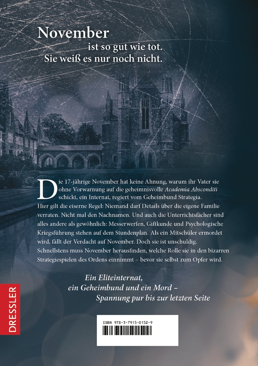 In "Killing November" von der New York Times #1 Bestseller-Autorin Adriana Mather wird der Leser in die geheimnisvollen Mauern der Academy Absconditi entführt. November findet sich unerwartet in einem Internat wieder, das mehr Geheimnisse birgt, als sie sich je hätte vorstellen können. Hier gibt es keine Elektrizität, kein Internet und ein archaisches Auge-um-Auge-Strafsystem herrscht. Der Lehrplan umfasst Fächer wie Messerwerfen, Giftmischerei und die Kunst der Täuschung, denn die Schüler sind Nachfahren der weltweit mächtigsten Strategen und werden zu Attentätern, Spionen und Meister der Verkleidung ausgebildet. Als ein Schüler ermordet wird, steht November im Zentrum der Verdächtigungen. Sie muss ihre wahren Feinde von ihren Verbündeten unterscheiden können, bevor sie entweder zur Mörderin abgestempelt wird oder selbst zum Opfer fällt. Ein atemraubender Thriller, der November und die Leser bis zur letzten Seite in Atem hält.