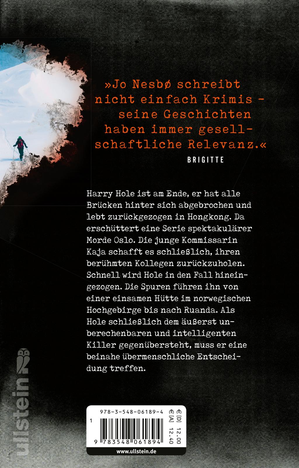 Harry Hole ist am Ende, er hat alle Brücken hinter sich abgebrochen und lebt zurückgezogen in Hongkong. Da erschüttert eine Serie aufsehenerregender Morde Oslo. Die junge Kommissarin Kaja schafft es schließlich, ihren berühmten Kollegen zurückzuholen. Schnell wird Harry in den Fall hineingezogen. Der Täter erweist sich als äußerst unberechenbar und intelligent. Als Harry dem Killer schließlich gegenübersteht, muss er eine beinahe übermenschliche Entscheidung treffen.