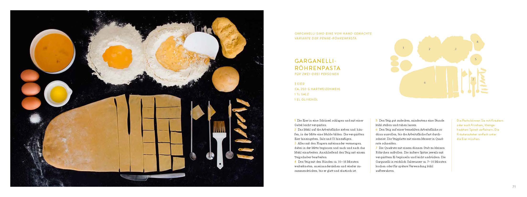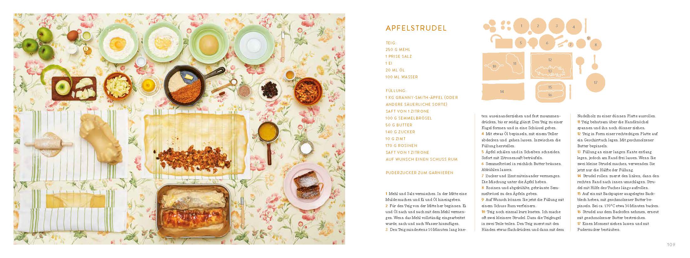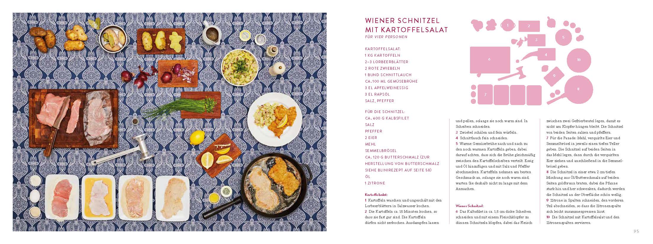 So werden von ihr rund 60 Gerichte von deutschen Klassikern wie Käsespätzle, Wiener Schnitzel mit Kartoffelsalat und Apfelstrudel bis hin zu internationalen Leckerbissen wie Quiche Lorraine, Patatas bravas, asiatische Sommerrollen oder selbst gemachter Tofu auf anschaulichste Art und Weise dargestellt – quasi wie ein Koch-Kunstwerk. Die Rezepte dazu sind einfach und schnell gemacht, sodass gerade auch Anfänger am Herd ihren Spaß daran haben.