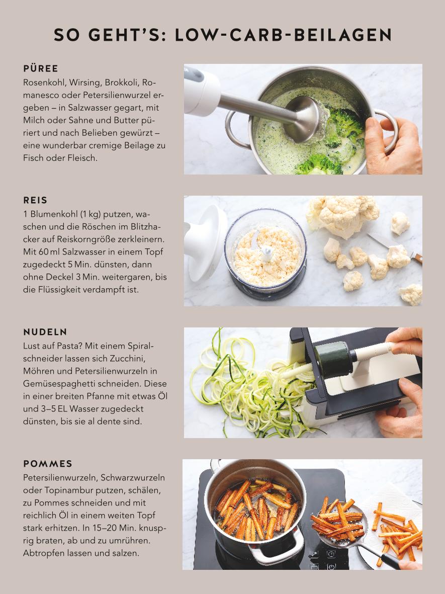 - Für alle, die auf eine gesunde, vitaminreiche Ernährung und die schlanke Linie achten und trotzdem nicht auf den vollen Genuss verzichten wollen: Low Carb-Rezepte, die Körper und Seele schmeicheln.