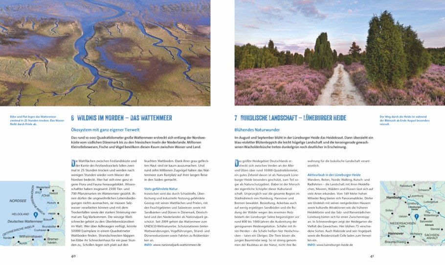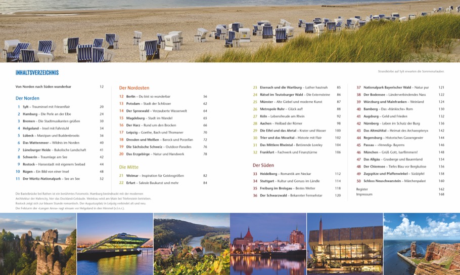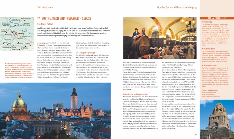 Lassen Sie sich von den Sehenswürdigkeiten vor Ihrer Haustür überraschen und entdecken Sie Deutschlands Vielfalt an Gebirgen, Seen und Flüssen, Küsten, Kulturdenkmälern und geschichtsträchtigen Städten. Doch wohin genau sollten Sie reisen, was keinesfalls verpassen? Dieser Reiseband verspricht Ihnen die ideale Mischung aus Städtereisen, Weltkulturerbe und Natur. Für einen traumhaften Urlaub im eigenen Land, mit jeder Menge Inspirationen und hilfreichen Tipps.