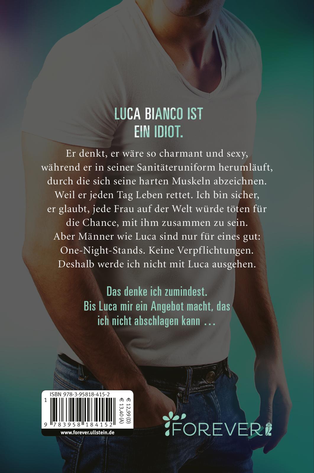 Er denkt, er wäre so charmant und sexy, während er in seiner Rettungssanitäteruniform herumläuft, durch die sich seine harten Muskeln abzeichnen. Weil er jeden Tag Leben rettet. Ich bin sicher, er glaubt, jede Frau auf der Welt würde töten für die Chance, mit ihm zusammen zu sein. Aber Männer wie Luca sind nur für eines gut: One-Night-Stands. Keine Verpflichtungen. Deshalb werde ich nicht mit Luca ausgehen, obwohl meine Freundinnen auf der Bachelor-Versteigerung für mich ein Date mit ihm gewonnen haben.