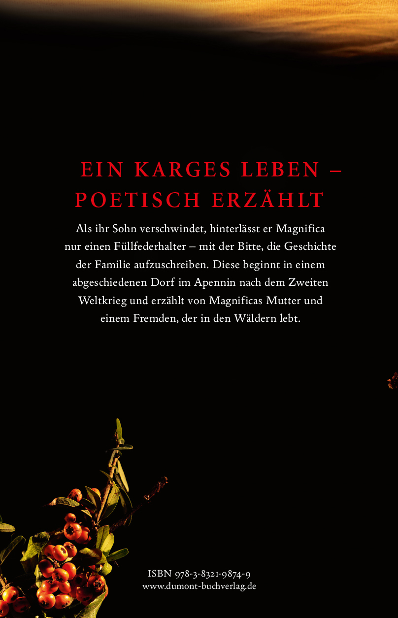 In einem Dorf im Apennin, in dem man nur bleibt, wenn man dort geboren wird, leben Ada Maria und ihr Bruder Pietrino zusammen mit ihrem Vater Aniceto. Das Oberhaupt der Familie interessiert sich vor allem für die Jagd und das Präparieren toter Tiere. Seine Gefühle schenkt er Teresina, einer einfachen, aber fein- fühligen Frau, die seit Jahren seine Geliebte ist. Ada Maria ignoriert die Frau zunächst, so gut sie kann. Seit dem Tod der Mutter führt sie den Haushalt und kümmert sich um den geliebten Bruder. Doch wenn sie allein ist, träumt sie von der modernen Welt, den großen Städten und hofft auf ein anderes Leben, das nicht von Entbehrung bestimmt ist. Sie will weg, aber wohin? Ada Maria kennt nur das Dorf und seine eigenbrötlerischen Bewohner. Als sie eines Tages im Wald auf Benedikt, einen Deutschen, trifft, scheint die ersehnte Veränderung Wirklichkeit zu werden. Im Gegensatz zu ihr kennt Benedikt die Welt, von der Ada Maria träumt. Erst viele Jahre später, als sie mit ihrer Tochter Magnifica das Dorf verlassen muss, sieht sie die Kargheit und die Abgeschiedenheit, in der ihr Leben stattgefunden hat, mit ganz anderen Augen.