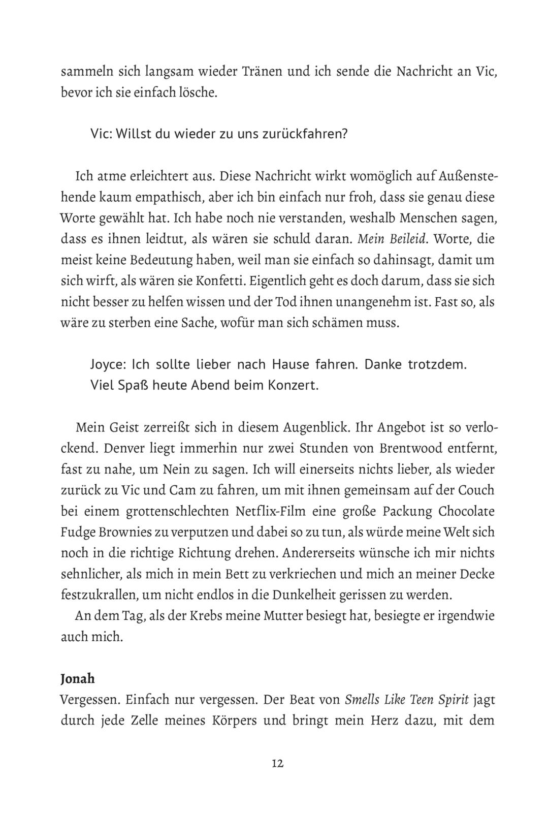 Seit dem Tod ihrer Mutter kämpft Joyce täglich gegen den Schmerz, die Stille und die Angst in ihrem Herzen an. Doch erst als sie ihr altes Leben hinter sich lässt und einen Neuanfang wagt, scheint sich die Dunkelheit in ihrer Seele etwas aufzuhellen. Denn in Marble Arch muss sie sich nicht mehr jeden Tag ihren Ängsten stellen. Und dort trifft sie auch auf den unfassbar charmanten Jonah, der sie mit seiner humorvollen Art sogleich in seinen Bann zieht. Joyce ahnt jedoch nicht, dass der Mann, der sie wie kein anderer zu verstehen scheint, von seinen eigenen Dämonen heimgesucht wird. Und diese könnten die aufkeimenden Gefühle zwischen ihnen für immer zerstören …