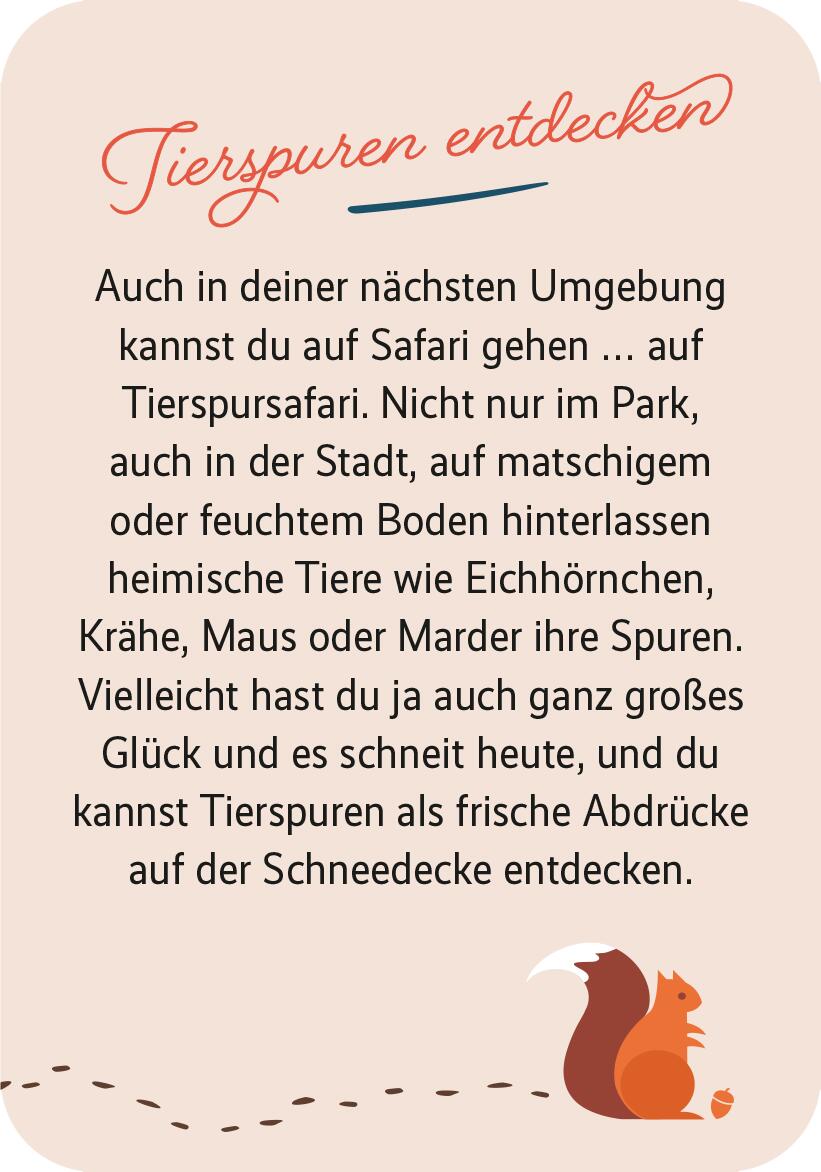 Jeden Tag eine neue Inspiration für ein kleines Alltagsabenteuer – so kommst du gut gelaunt durch die Vorweihnachtszeit! Diese interaktive Adventskalender-Box ist perfekt für alle, die die Vorfreude aufs schönste Fest des Jahres durch kleine, charmante Aktionen besonders steigern und nicht in die alljährliche Alle-Jahre-wieder-Monotonie verfallen wollen. Denn die kleinen Abenteuerkärtchen bieten ganz viel Abwechslung! Jeden Tag eine überraschende Idee ganz einfach in den Alltag einbinden und sich freuen.
