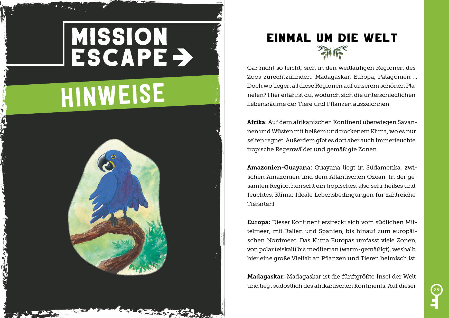 - Beschreibung Löse das rätselhafte Geheimnis des Zoos! Spannendes Escape Game für Kinder ab 9 Jahren Im Zoo gehen merkwürdige Ereignisse vor sich, denn alle Besucher haben sich in Tiere verwandelt! Nur du kannst sie retten! Also brich auf zu deiner großen Mission und rette den Zoo und seine Besucher. In diesem interaktiven Rätselbuch mit spannenden Geheimnissen erwarten dich unglaubliche Abenteuer. Die ausklappbare Übersichtskarte und der Decoder helfen dir bei der Lösung. Und das Beste: Mission Escape kann immer wieder neu gespielt werden! Egal, ob alleine oder mit Freunden – schlag die erste Seite auf und los geht's!Das fesselnde Escape-Feeling in BuchformInteraktives Buch mit kniffligen Rätseln, zahlreichen Geheimnissen, tückischen Fallen und verschlüsselten Alphabeten, allein oder im Team spielbarMit ausklappbarer Karte und Decoder zum Entschlüsseln der Codes und RätselFür Kinder ab 9 Jahren Mit diesem Spiele-Trend in Buchform kommt echtes Live-Escape-Feeling auf! Es ist an dir und deinen Freunden die Besucher des Zoos zu retten, die sich auf mysteriöse Weise alle in Zootiere verwandelt haben. Wist du es schaffen, das Mysterium zu lösen und die Besucher zu retten? Ein echtes Escape Adventure!