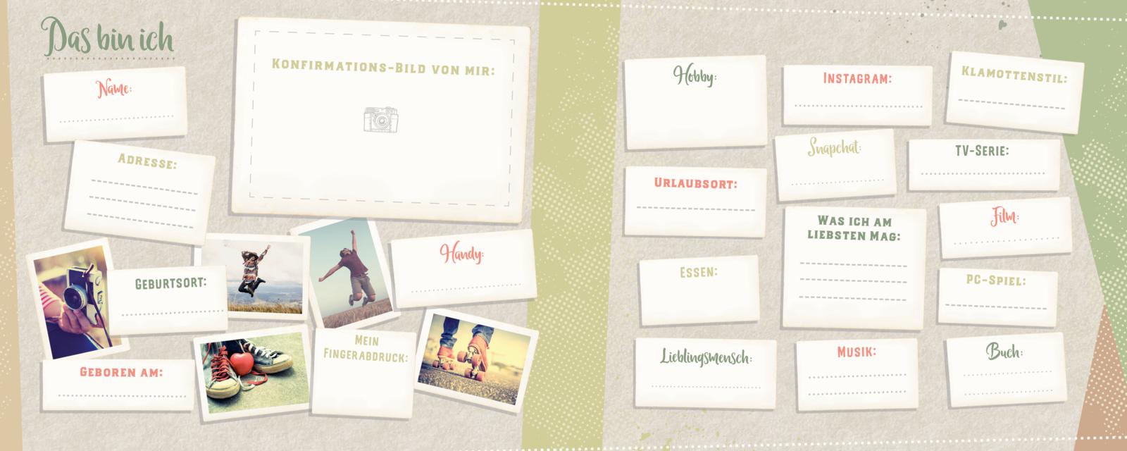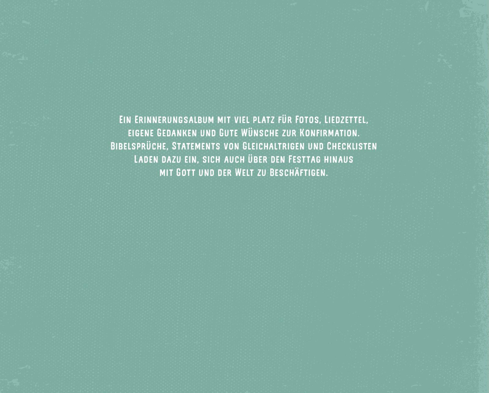 Ein Konfirmationsalbum mit viel Platz für Eintragungen und Fotos. So wird das Fest mit seinem Gottesdienst, den Gästen und Geschenken perfekt in Erinnerung gehalten. Daneben spielt auch des Verhältnis zum eigenen Glauben eine Rolle: Wer bin ich und was ist mir wichtig, wie stelle ich mir Gott vor?