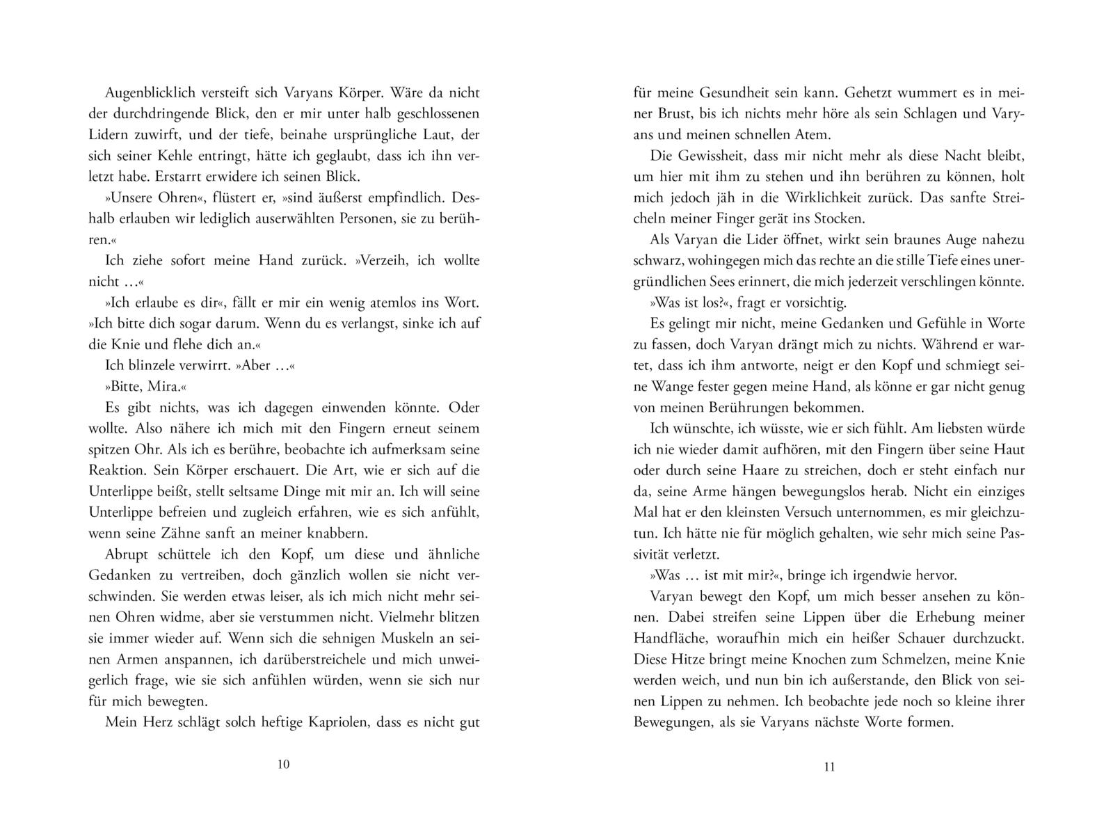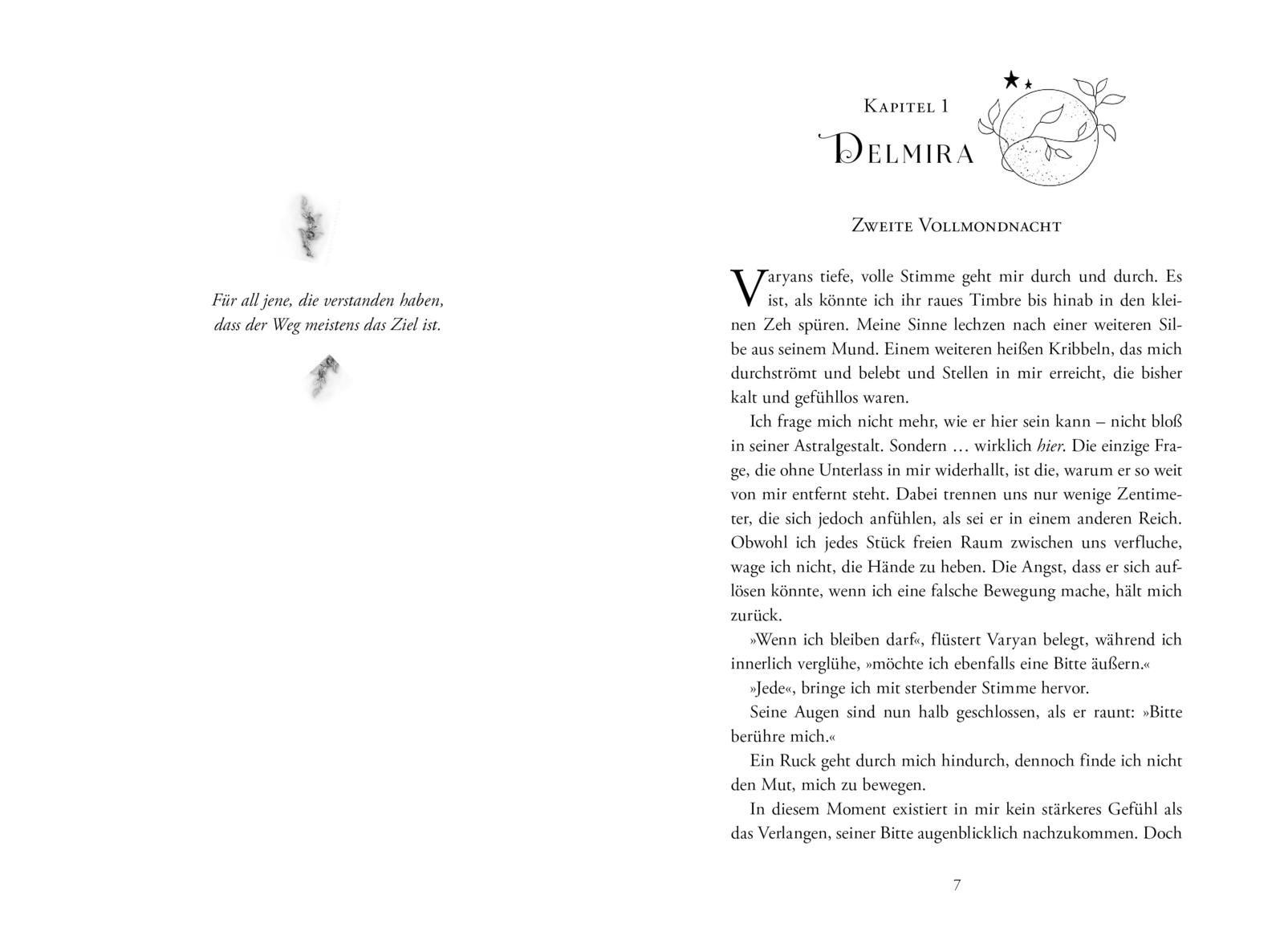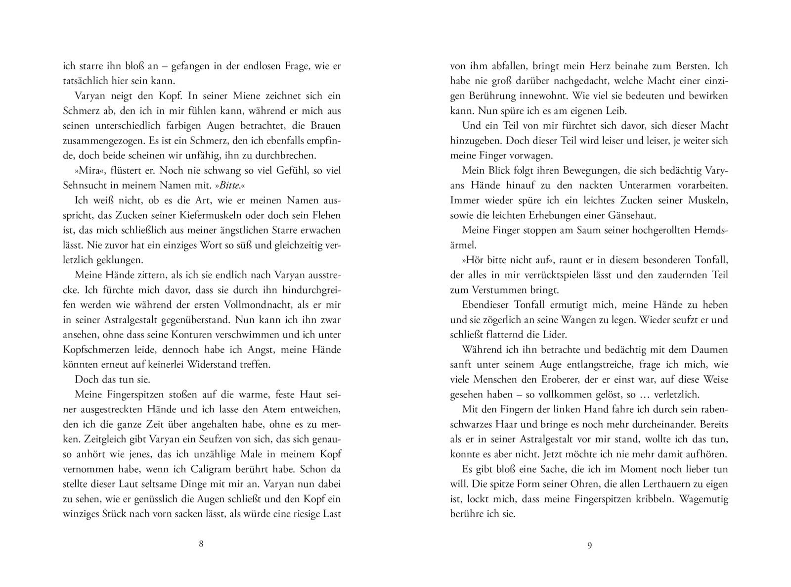 Für einen kurzen Augenblick ist es Varyan gelungen, das Schwert Caligram, sein Gefängnis, zu verlassen und mit Delmira zusammen zu sein. Nur noch vier Wochen bleiben, um ihren Auftrag zu erfüllen. Scheitert sie, trifft auch sie der Fluch der Seehexe. Doch der Weg ist schwer und an ihrem Ziel grassiert der Rote Tod. Als wäre das nicht schon genug, hadert Delmira mit ihren Gefühlen für Varyan, denn die Götter haben für sie einen anderen Schicksalsgebundenen auserwählt – und sich gegen den Willen der Götter zu stellen, hat einen hohen Preis …