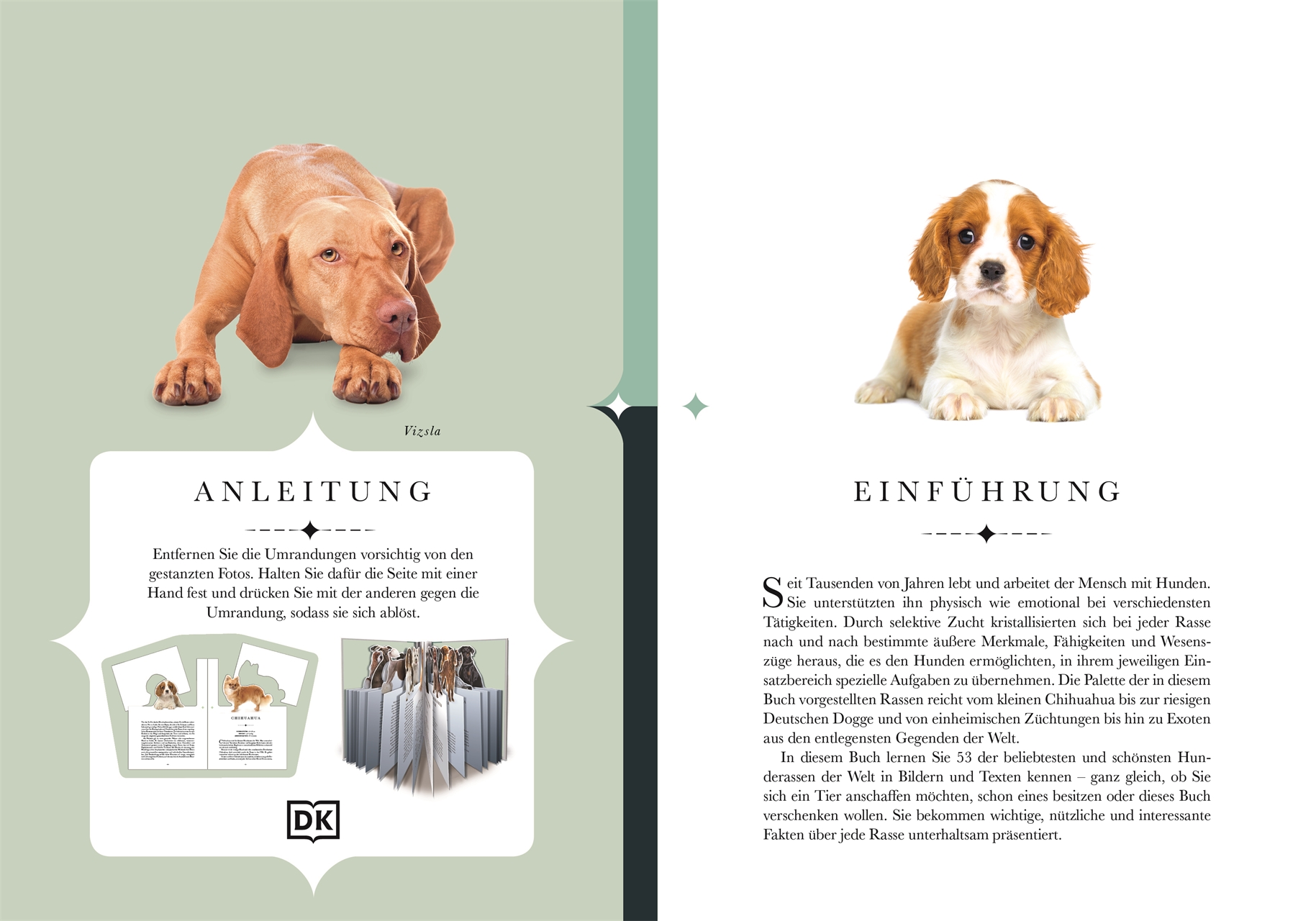Der Hund ist der beste Freund des Menschens – und dieses beeindruckende Buch zeigt ihn von einer ganz besonderen Seite: Die 50 beliebtesten & außergewöhnlichsten Hunde der Welt als einzigartiges Papeterie-Erlebnis. Mit wenigen Handgriffen verwandelt sich das Buch mit wunderschönen Hundefotos in ein aufgefächertes Kunstwerk. In Textporträts erfahren Sie Wissenswertes zu den Besonderheiten der Hunderassen & interessante Fakten über Hunde. Ein wunderbares Geschenk für Buch- und Hundeliebhaber!