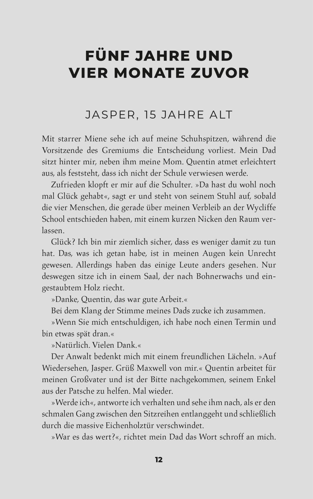 Die Einladung zum Spiel »Secret Enemy«, das ein hohes Preisgeld verspricht, kommt Abbie Westing mehr als gelegen. Zwar gehört sie als Studentin des Waterbury Colleges zur Elite des Landes, doch der Reichtum ihrer Familie steht seit Neuestem auf sehr wackligen Beinen. Womit sie nicht rechnet: Ihre erste Aufgabe endet damit, dass sie ausgerechnet der arrogante Jasper Anderson küsst und sich kurzerhand als Spielpartner anbietet. Als die beiden sich näherkommen, sorgt plötzlich mehr als nur das Game für gehöriges Herzklopfen. Doch dann beginnt jemand die Geheimnisse der Teilnehmenden zu enthüllen und Abbie muss sich die Frage stellen, auf welcher Seite Jasper tatsächlich steht und was er vor ihr verbirgt …