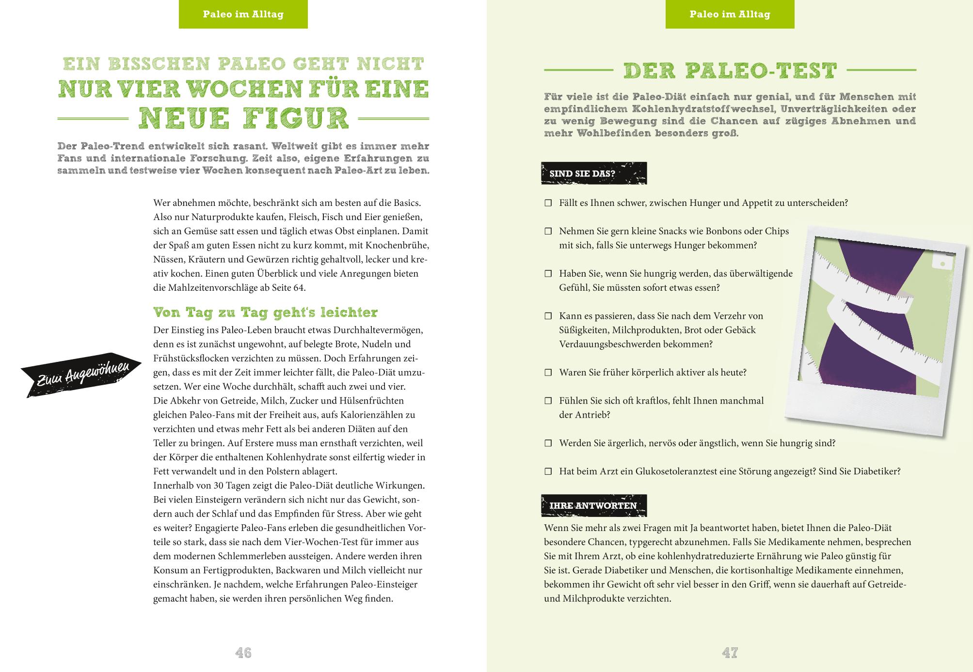 Die „Paleo-Diät für Einsteiger“ ist ein praktischer Ratgeber zum Thema Steinzeiternährung. Der Clou dieser Diät: Zwei Drittel Gemüse und Obst, der Rest besteht aus magerem Fleisch, Fisch und Eiern. Zahllose Menschen haben so bereits überschüssige Kilos abgeschüttelt. Werden auch noch kohlenhydratreiche Lebensmittel wie Brot oder Pasta oder Milchprodukte gestrichen, entsteht ganz von selbst ein Kaloriendefizit, das Fettpolster rapide schwinden lässt.