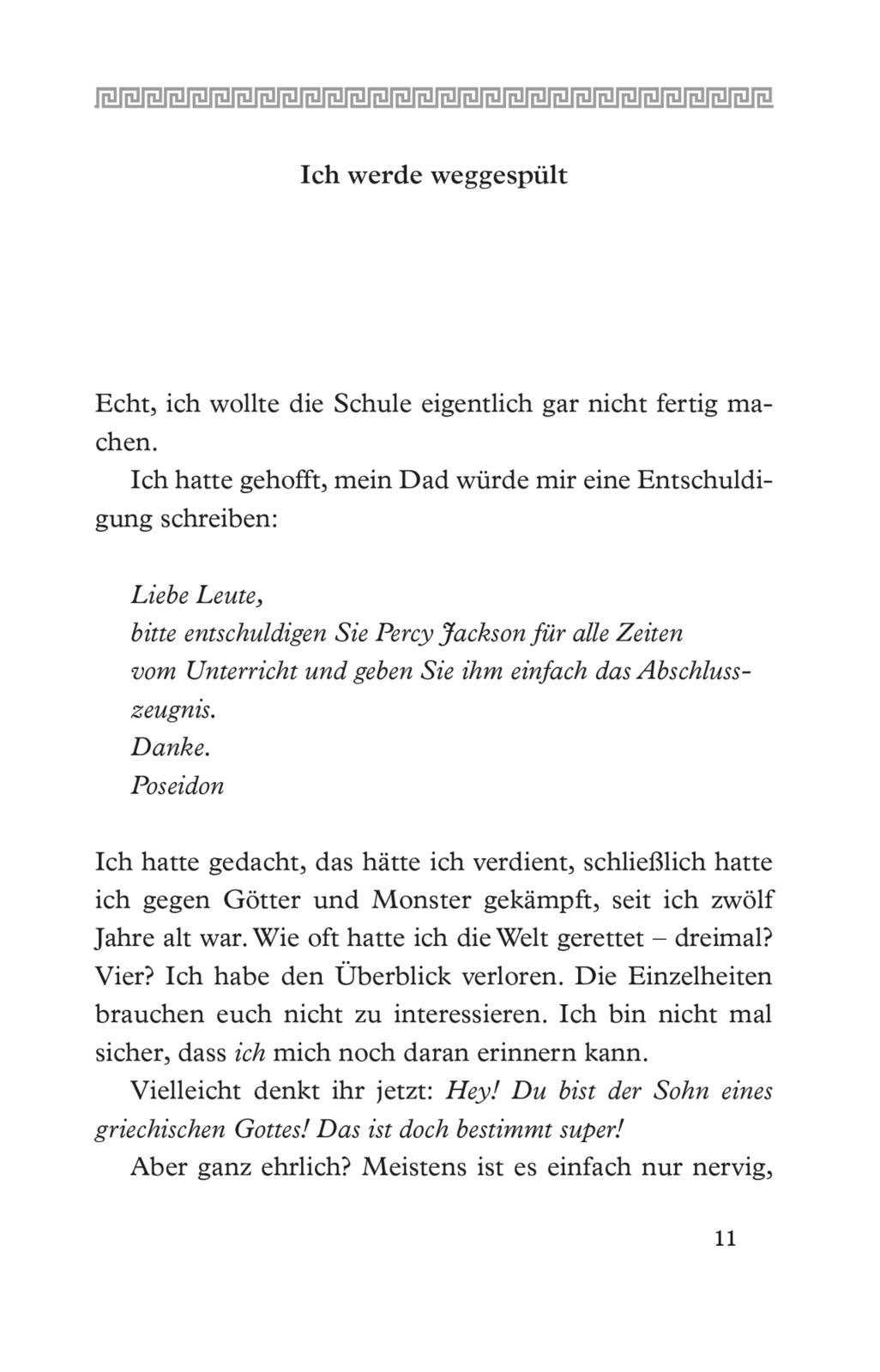 Percy Jackson musste schon mehrmals die Welt retten, nun hat er die Nase voll! Er hofft auf einen normalen Start am College zusammen mit seiner Freundin Annabeth. Doch leider sind die Götter noch nicht ganz fertig mit ihm. Angeblich braucht er für seine Zulassung drei Empfehlungsschreiben vom Olymp … Natürlich lassen sich die Götter da erst mal ordentlich bitten. Für sein erstes Schreiben muss er zusammen mit Annabeth und Grover in ein neues Abenteuer ziehen und den gestohlenen Kelch des Ganymed, des Mundschenks der Götter, wiederbeschaffen. Und diese Aufgabe hat es in sich!
