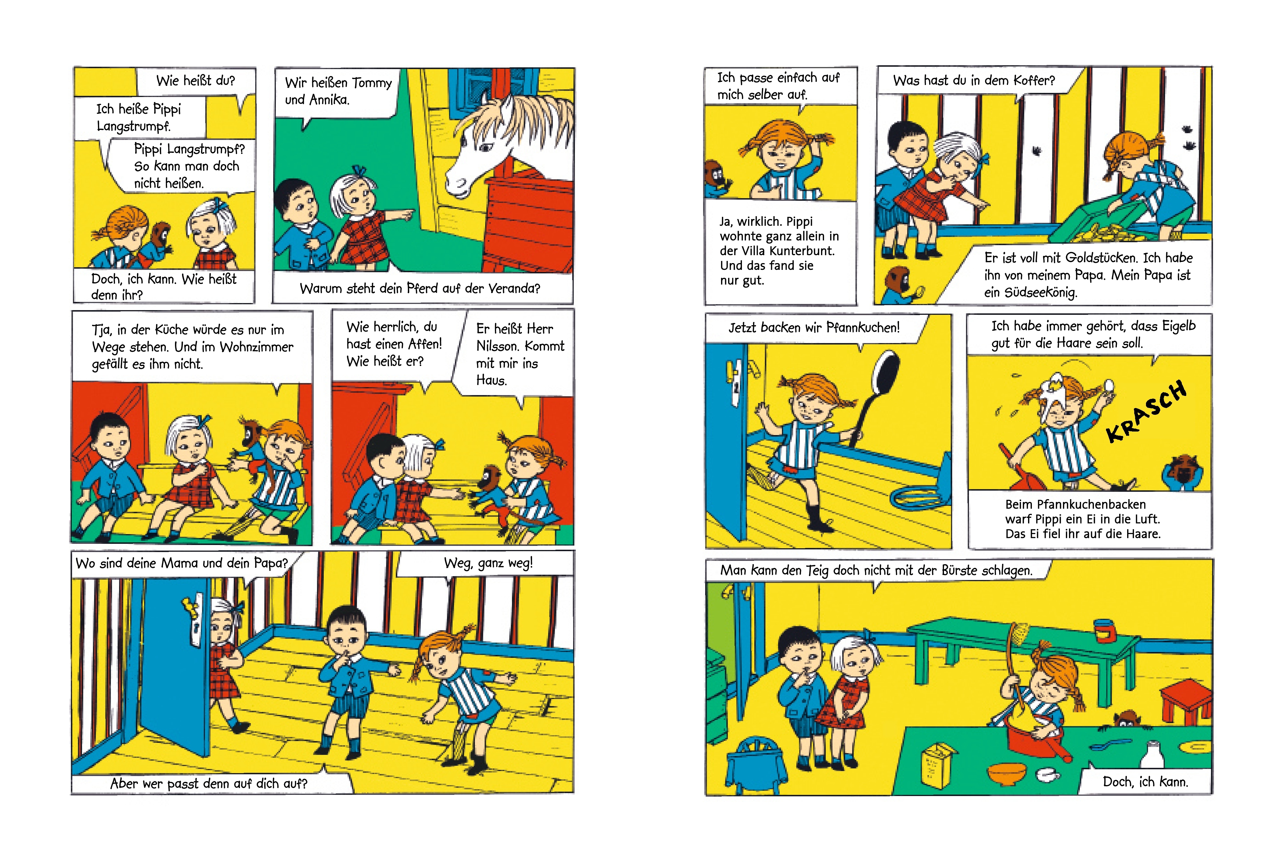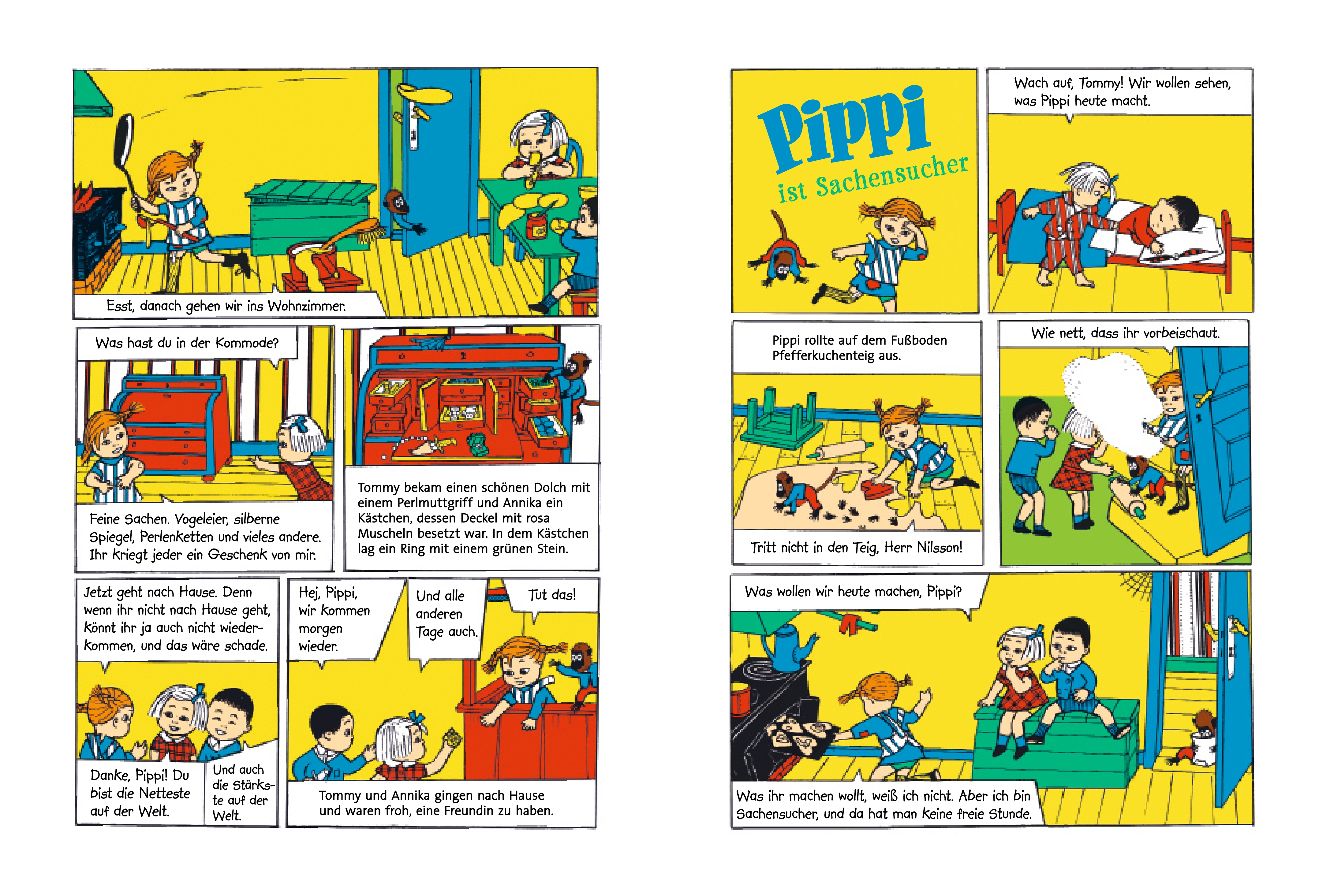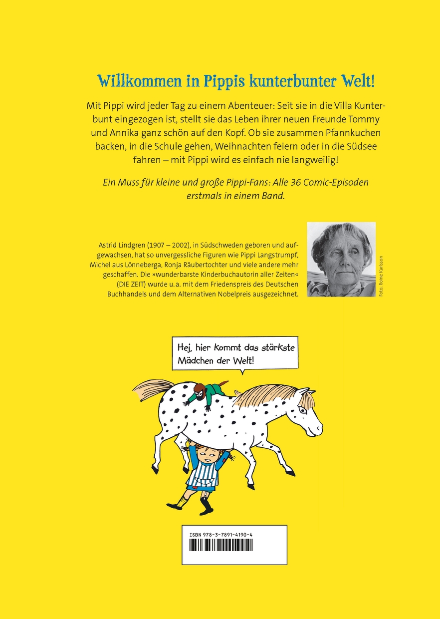 Aus der Lindgren-Schatztruhe: die Pippi-Langstrumpf-Comics. 36 x Pippi Langstrumpf für alle, die nicht genug bekommen können vom stärksten Mädchen der Welt! Pippi zieht ein in die Villa Kunterbunt, fährt zur See, gibt ein Fest, will nicht groß werden und viele andere kurze Episoden aus der Welt von Pippi, Thomas und Annika, dem Pferd und Herrn Nilsson. Ingrid Vang Nyman, die Pippi-Langstrumpf-Illustratorin der ersten Stunde, war eine begnadete Bildergeschichtenzeichnerin und ihre Illustrationen waren der Zeit weit voraus. Sammelband mit 36 Pippi-Langstrumpf-Comics von Ingrid Vang Nyman, erstmals ab Ende der 1950er Jahre in einer schwedischen Kinderzeitung veröffentlicht. Für Liebhaber und für Leseanfänger.