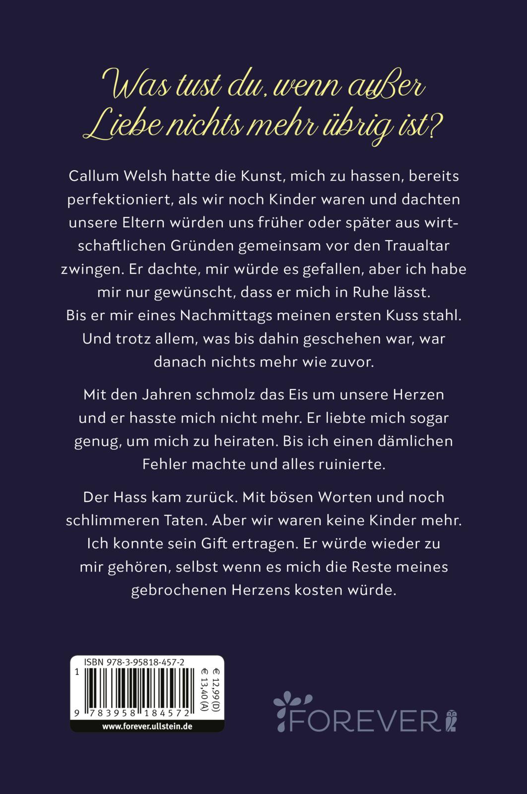 Callum Welsh hatte die Kunst, mich zu hassen, bereits perfektioniert, als wir noch Kinder waren und dachten unsere Eltern würden uns früher oder später aus wirtschaftlichen Gründen gemeinsam vor den Traualtar zwingen. Er dachte, mir würde es gefallen, aber ich habe mir nur gewünscht, dass er mich in Ruhe lässt.