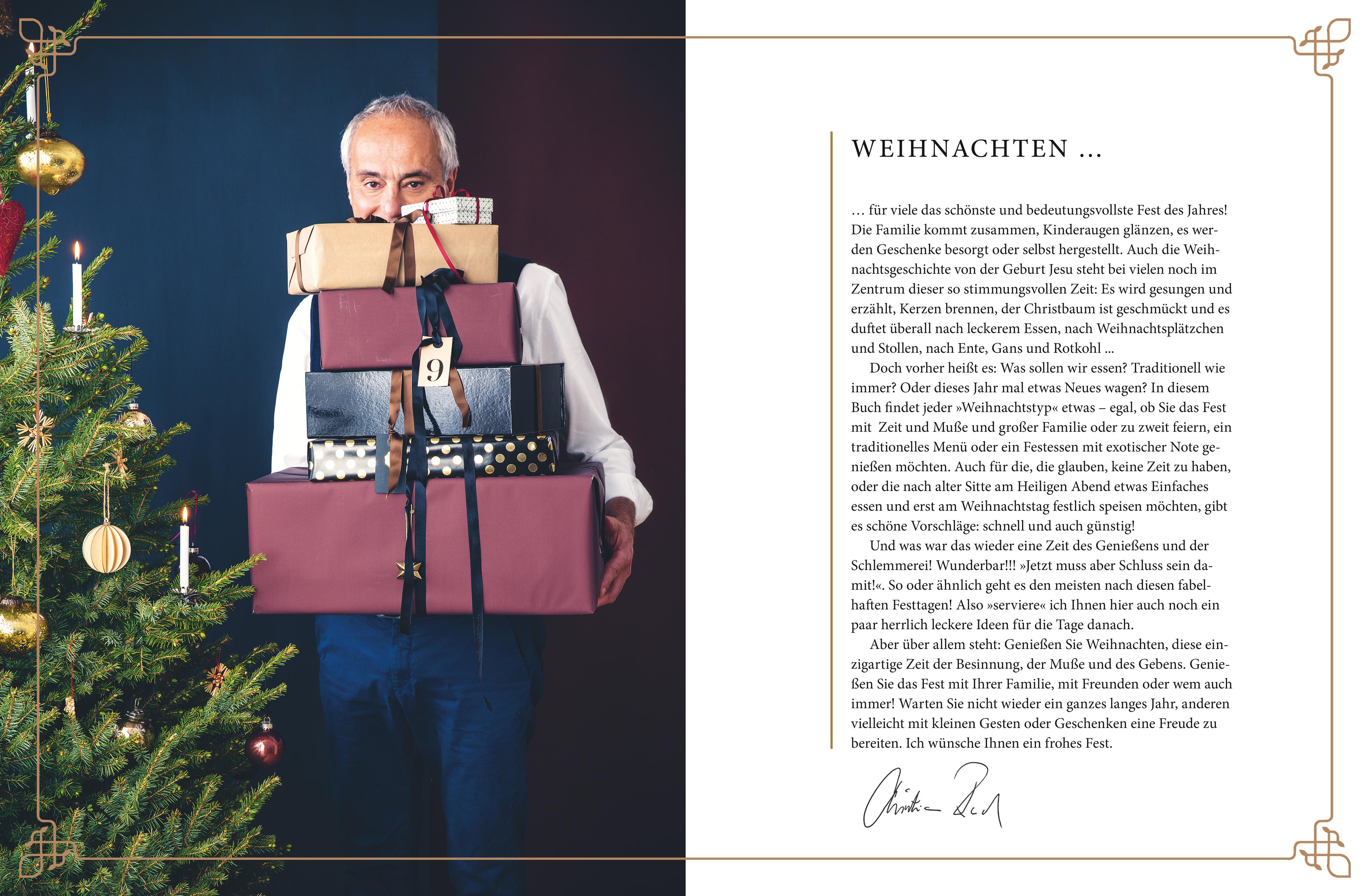 Durch seine Erfahrung als Fernsehkoch, weiß Christian Rach außerdem, was Sie an Weihnachten wirklich wollen: traditionelle Kekse die nach Heimat schmecken, köstliche Menüs die sich gut vorbereiten lassen und günstige Mahlzeiten für ein Weihnachtsfest mit der ganzen Familie. Der Autor hat deshalb im schön gestalteten Kochbuch gleich fünf verschiedene 3-Gänge-Menüs zusammengestellt.