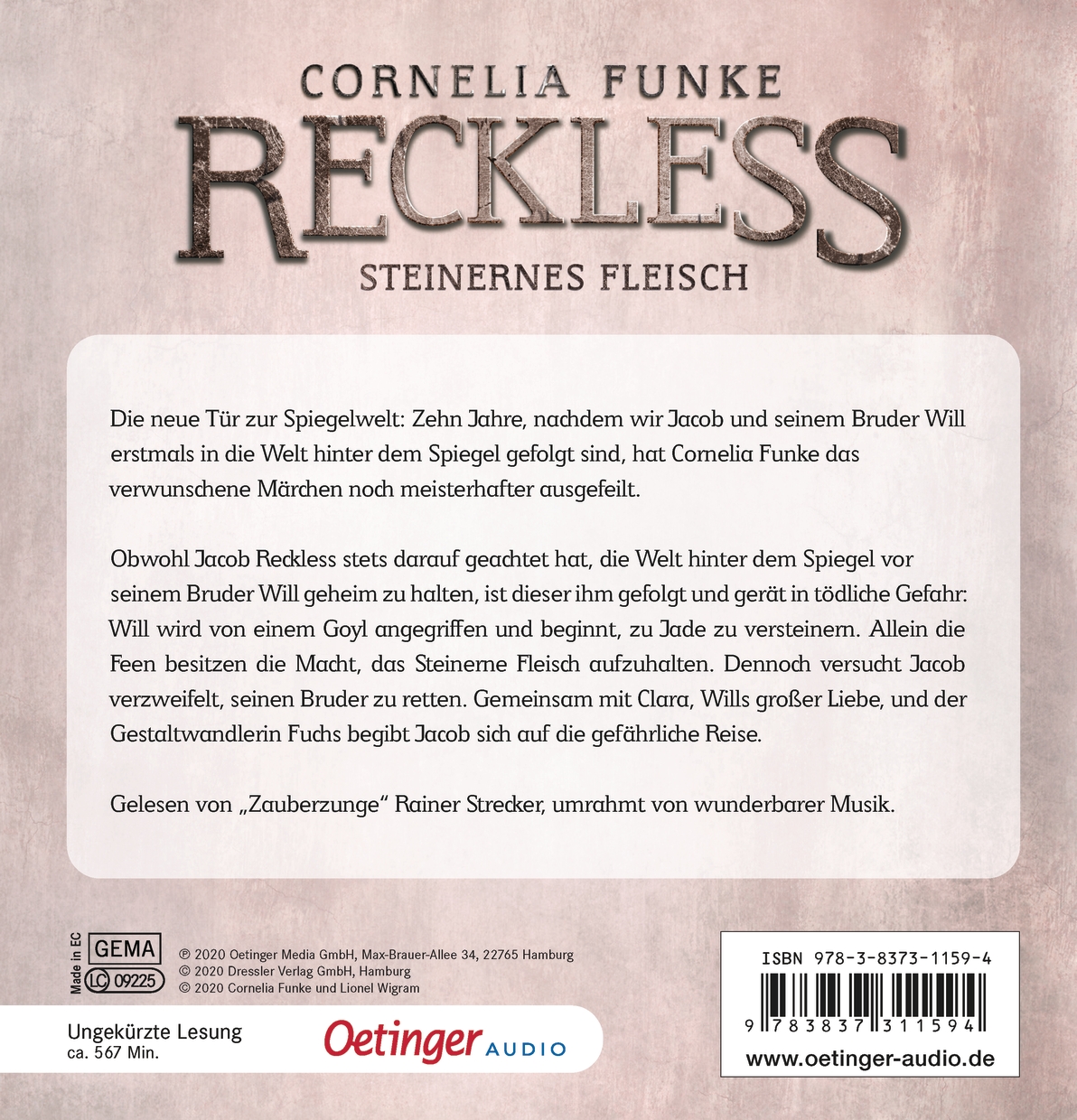 Die neue Tür zur Spiegelwelt: Zehn Jahre, nachdem wir Jakob und seinem Bruder Will erstmals in die Welt hinter dem Spiegel gefolgt sind, hat Cornelia Funke das verwunschene Märchen noch meisterhafter ausgefeilt. „Es war, als hätte ich ein verwunschenes Haus mit vielen Stockwerken und wunderschönen Räumen gebaut, aber die Tür passte einfach nicht zum Rest.“ Cornelia Funke auf die Frage, was sie bewogen hätte, Reckless Band 1 zu überarbeiten.