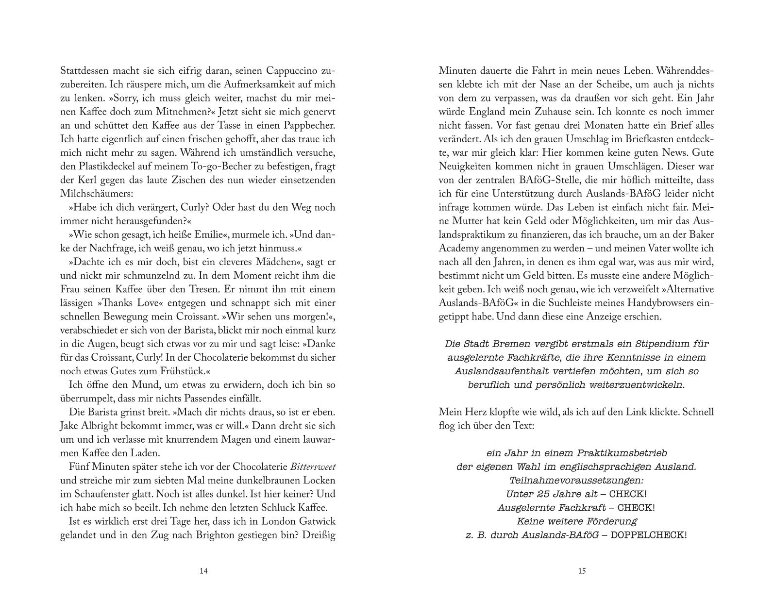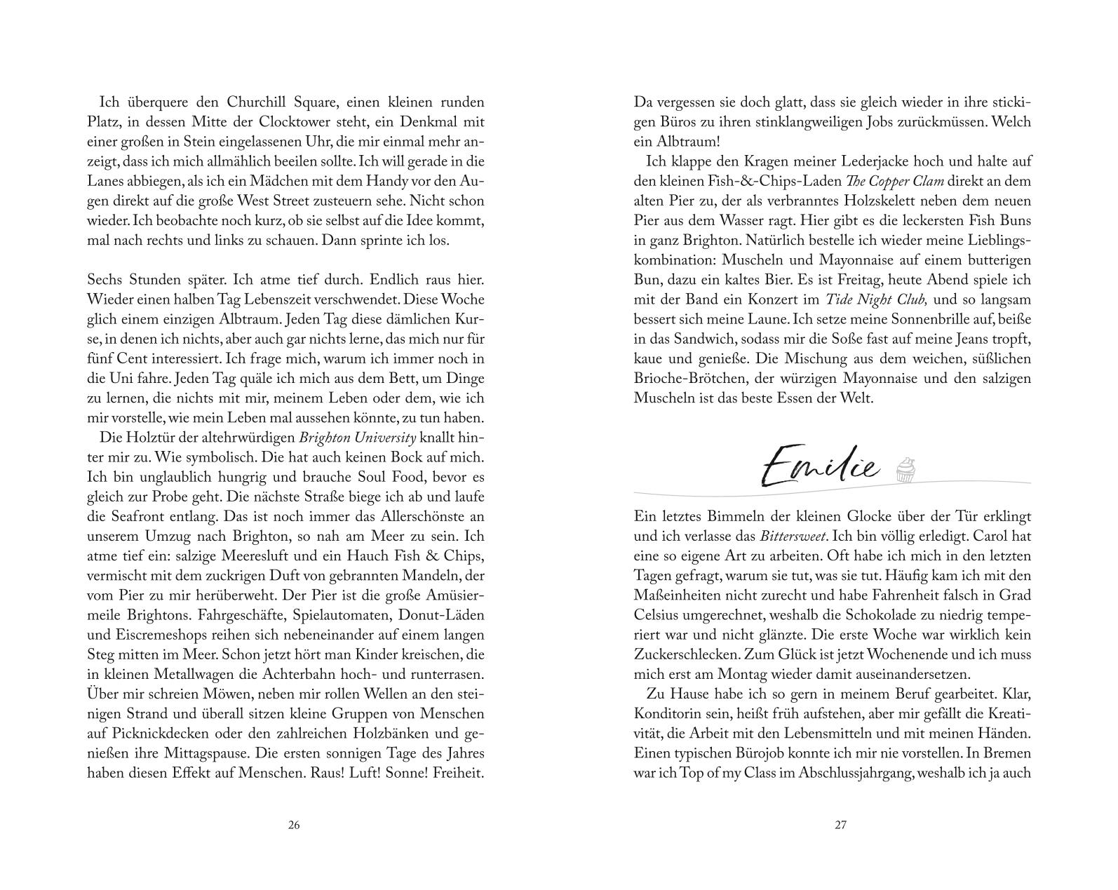 Als Emilie nach Brighton zieht, soll für sie mit dem Praktikum in einer angesagten Chocolaterie ein neues Kapitel beginnen. In einem Club trifft sie den sexy Schlagzeuger Jake. Auf den ersten Blick scheint sein Leben ein Rausch aus Partys und Mädchen zu sein, doch hinter der Fassade kämpft Jake mit Problemen. Emilie möchte ihn näher kennenlernen, mehr sein, als nur eine seiner flüchtigen Affären. Sie ändert ihren Style, begeistert sich für Dinge, die Jake mag - und vergisst dabei, wer sie eigentlich ist. Emilie verschiebt ihre Grenzen - für Jake, für ihren Job, für eine bessere Version von sich selbst. Als sie schließlich realisiert, was sie alles aufgegeben hat, um Jake nah zu sein, zieht sie einen radikalen Schlussstrich. Sie sucht das Gespräch mit einem Personal Coach, zeigt in der Chocolaterie, was in ihr steckt und gestaltet ihr Leben in Brighton nach ihren Vorstellungen.