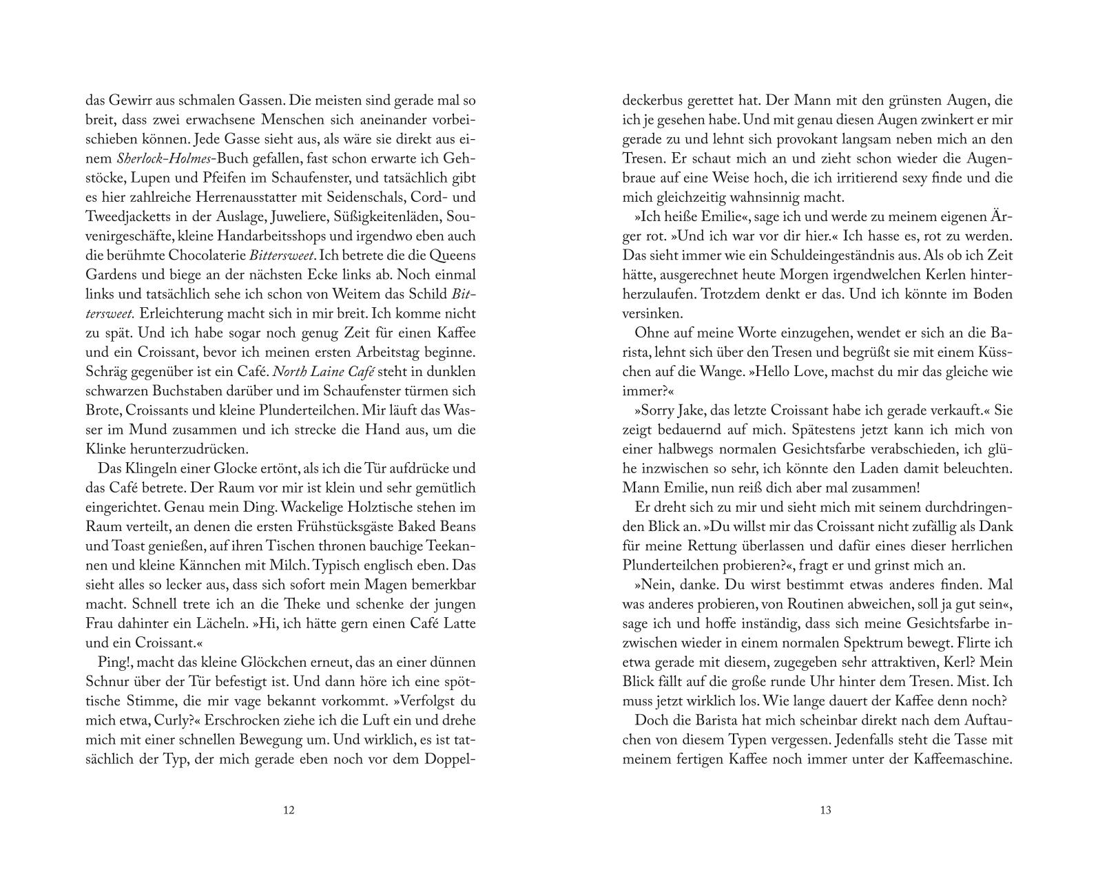 - Beschreibung „Ein Setting zum Wegträumen und eine bittersüße Liebesgeschichte, die mich zum Lachen, zum Weinen und zum Nachdenken gebracht hat.“ SPIEGEL-Bestseller-Autorin LILLY LUCAS *********** Sie will gefallen, vor allem ihm. Er kämpft gegen seine Familie und flieht vor der Liebe. Zauberhafte Second-Chance-Romance zum Thema People Pleasing und den Weg der emotionalen Heilung. Als Emilie nach Brighton zieht, soll für sie mit dem Praktikum in einer angesagten Chocolaterie ein neues Kapitel beginnen. In einem Club trifft sie den sexy Schlagzeuger Jake. Auf den ersten Blick scheint sein Leben ein Rausch aus Partys und Mädchen zu sein, doch hinter der Fassade kämpft Jake mit Problemen. Emilie möchte ihn näher kennenlernen, mehr sein, als nur eine seiner flüchtigen Affären. Sie ändert ihren Style, begeistert sich für Dinge, die Jake mag - und vergisst dabei, wer sie eigentlich ist. Emilie verschiebt ihre Grenzen - für Jake, für ihren Job, für eine bessere Version von sich selbst. Als sie schließlich realisiert, was sie alles aufgegeben hat, um Jake nah zu sein, zieht sie einen radikalen Schlussstrich. Sie sucht das Gespräch mit einem Personal Coach, zeigt in der Chocolaterie, was in ihr steckt und gestaltet ihr Leben in Brighton nach ihren Vorstellungen. Für Jake ist Emilie zunächst nur eine beliebige Ablenkung, eine Möglichkeit dem elterlichen Druck zu entfliehen. Er genießt ihre Nähe, doch mehr ist für ihn nicht drin - bis er kurz davor ist, sie endgültig zu verlieren. Haben die beiden eine zweite Chance, oder wird Emilie sich für den charmanten Kobe entscheiden? Kann ein Song nochmal alles verändern? Eine Geschichte voller Leidenschaft, Selbstfindung, unerwarteter Wendungen - und der Erkenntnis: wahres Glück bedeutet, sich selbst treu zu bleiben. Dieses Buch wird dir gefallen, wenn du die Tropes Second Chance, Music Romance und She fell first, but he fell harder liebst.Hinweis: Farbschnitt nur in limitierter Auflage vorrätig. Sobald alle Exemplare mit Farbschnitt ausverkauft sind, liefern wir das Buch ohne Farbschnitt.