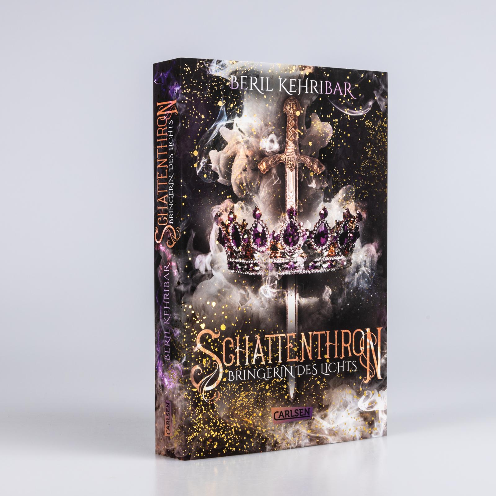 - Beschreibung Endlich der Folgeband des SPIEGEL-Bestsellers »Schattenthron 1: Erbin der Dunkelheit«!**Bewahre dein Herz vor der Dunkelheit des Kronprinzen …**Ins Reich der Schatten zu gelangen und dessen Kronprinz Ilias aufzusuchen, hat Kaaya mehrmals an ihre Grenzen gebracht und wäre ohne ihre Freunde undenkbar gewesen. Doch sie haben es geschafft: Arian wurde gerettet. Nun gibt es größere Sorgen, denn der unvermeidbare Krieg rückt immer näher und Kaaya spielt eine gewichtige Rolle darin. Schon bald steht sie zwischen den Fronten und muss sich nicht nur zwischen Licht und Schatten entscheiden, sondern auch, ob sie bei Arian bleibt, oder dem Prinzen hinterherreist, an den sie ihr Herz zu verlieren droht …Hol dir die wunderschön veredelte Liebhaberausgabe für dein Bücherregal, nur jetzt mit einseitigem dreifarbigen Buchschnitt in der ersten Auflage!Persönliche Leseempfehlung von Mallak, der bekannten Bloggerin von @endlessbookworld:»Episch, fesselnd, herzzerreißend: ›Schattenthron‹ hat mir wieder gezeigt, weshalb ich Fantasy so liebe – es ist DIE Neuerscheinung des Jahres 2022!«//Dies ist der zweite Band der magischen Dilogie »Schattenthron« von Beril Kehribar. Alle Bände der Fantasy-Liebesgeschichte:-- Schattenthron 1: Erbin der Dunkelheit-- Schattenthron 2: Bringerin des Lichts//Diese Reihe ist abgeschlossen. Beril Kehribar ist eine der bekanntesten Buchbloggerinnen Deutschlands. Auf ihrem Instagram-Account @berilria.books schreibt sie über besondere Geschichten, wunderschöne Schmuckausgaben und alles, was sie in der Welt der Fantasy und Romance inspiriert und fasziniert. Ihr Debütroman »Schattenthron. Erbin der Dunkelheit« schaffte es ab der ersten Verkaufswoche auf die SPIEGEL-Bestsellerliste. Altersempfehlung: ab 14 JahreHinweis: Farbschnitt nur in limitierter Auflage vorrätig. Sobald alle Exemplare ausverkauft sind, liefern wir das Buch ohne Farbschnitt.