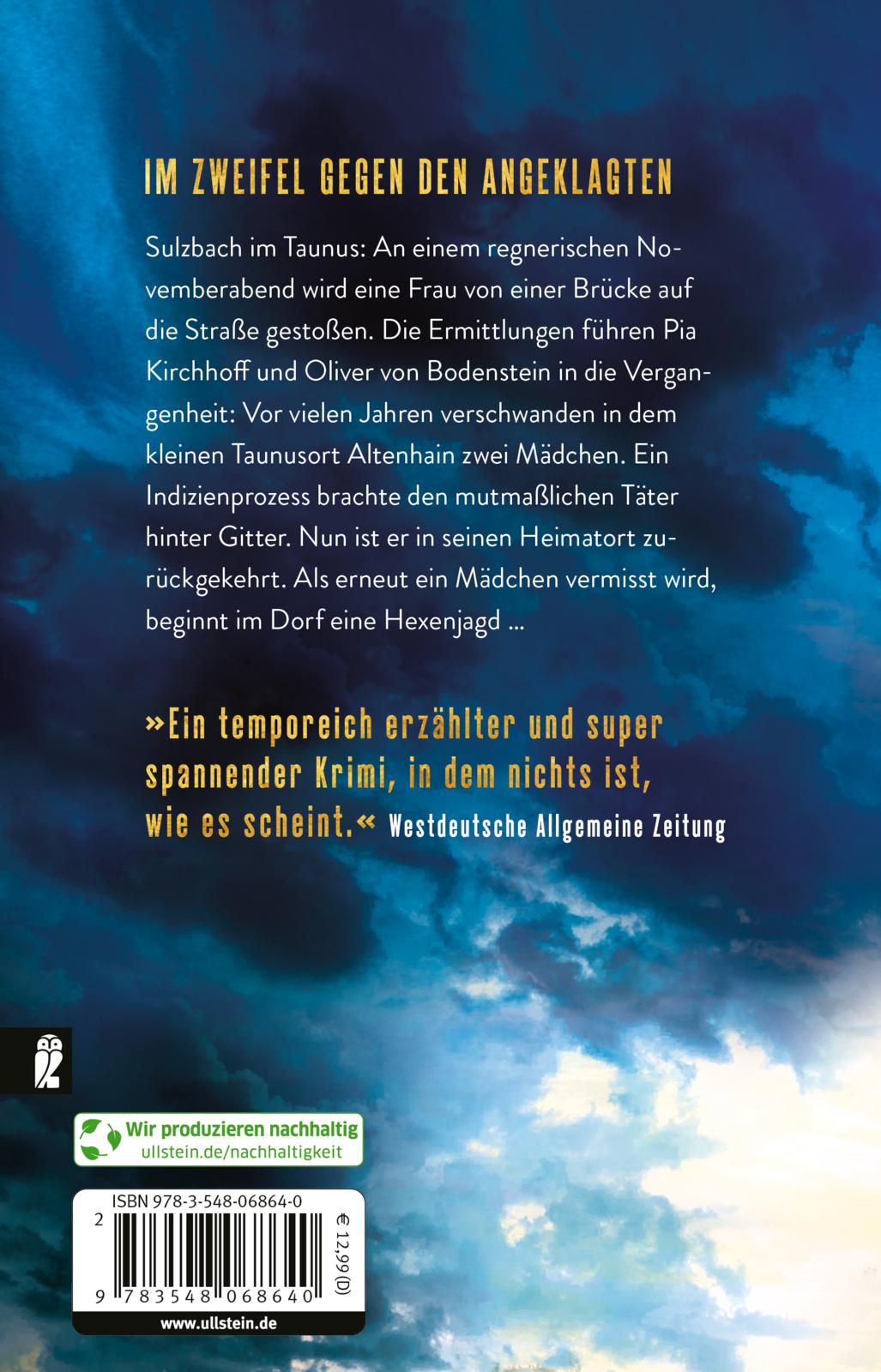 - Beschreibung Der Millionen-Bestseller von Nele Neuhaus!»Nele Neuhaus versteht es perfekt, die Spannung auf konstant hohem Niveau zu halten.« krimi-couch.deZwei tote Mädchen. Ein schrecklicher Verdacht. Ein Dorf, das Rache will…Sulzbach im Taunus: An einem regnerischen Novemberabend wird eine Frau von einer Brücke auf die Straße gestoßen. Die Ermittlungen führen Pia Kirchhoff und Oliver von Bodenstein in die Vergangenheit.Vor vielen Jahren verschwanden in dem kleinen Taunusort Altenhain zwei Mädchen. Ein Indizienprozess brachte den mutmaßlichen Täter hinter Gitter. Nun ist er in seinen Heimatort zurückgekehrt. Als erneut ein Mädchen vermisst wird, beginnt im Dorf eine Hexenjagd.*** Dieser Krimi wird Sie in den Bann ziehen: süchtig machend, unterhaltsam und voller Wendungen! ***