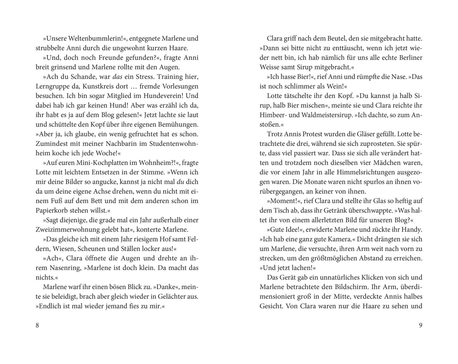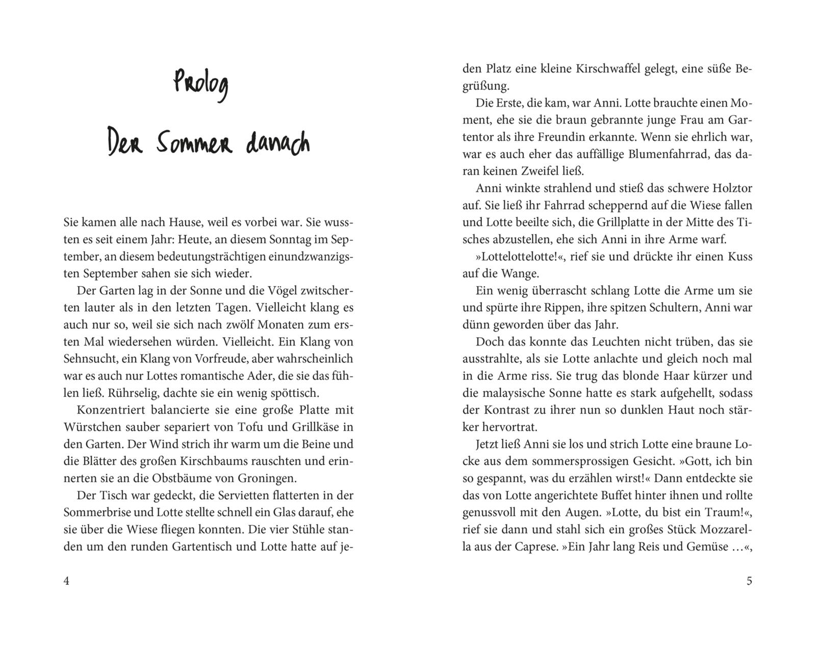 Die letzte Prüfung ist vorbei – das war´s mit Schule! Eigentlich sind Anni, Marlene, Clara und Lotte unzertrennlich. Aber jetzt machen sie sich auf den Weg, allein, ohne die besten Freundinnen an ihrer Seite und zerstreuen sich in alle Himmelsrichtungen: von Berlin bis nach Malaysia. Trotzdem bleiben sie verbunden über ihren Blog! Was sie in diesem einen Jahr erleben werden, ob bei Hilfsprojekten, im Studium oder auf einem Bauernhof in den Niederlanden, wen sie lieben werden und was sie über sich selbst erfahren, das steht noch in den Sternen. Nur so viel ist absolut sicher: dass sie sich wiedersehen werden – genau in einem Jahr, bei Lotte im Garten.