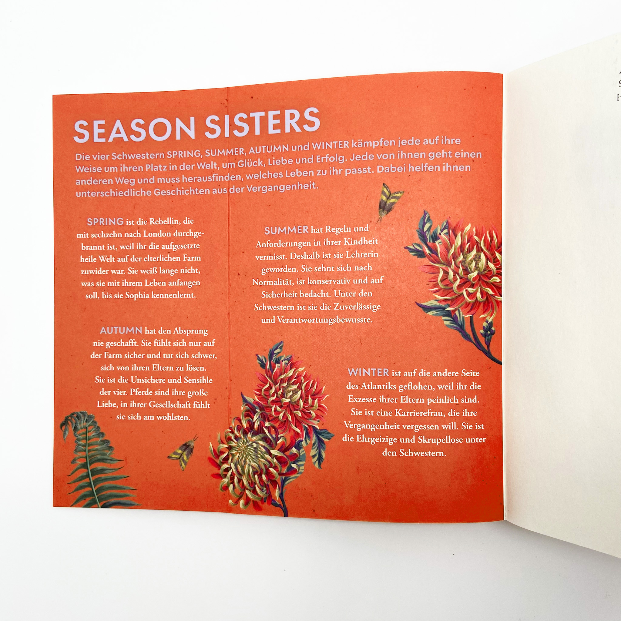 Von den vier Season-Schwestern ist Autumn die Sensible und Scheue. Nur auf der elterlichen Farm in Wales fühlt sie sich geborgen. Autumns große Leidenschaft sind Pferde, in ihrer Gesellschaft taut sie auf. Und auch ein wenig in der Gesellschaft des Pferdepflegers Liam. Durch eine unbedachte Bemerkung wird Autumn auf die Geschichte ihrer Mutter aufmerksam. Und erkennt: Leah ist eine Deutsche, sie entstammt sogar einem Adelsgeschlecht an der Mosel. Aber warum hat Leah ihre Herkunft vor den Töchtern verheimlicht? Ist sie vor ihrer Vergangenheit geflohen? Autumns Neugierde ist geweckt, sie will mehr über die Geschichte ihrer Familie erfahren. Doch dazu muss sie über ihren Schatten springen und nach Cochem an der Mosel reisen.