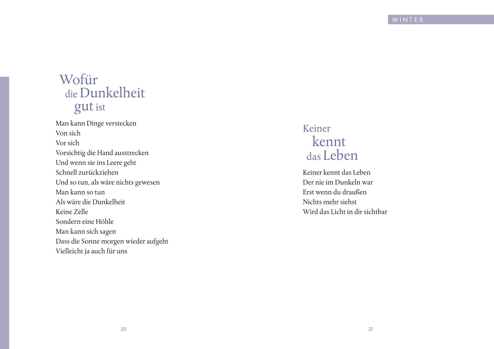 Die Texte: mal Umarmung, mal Erinnerung an unsere Stärke.