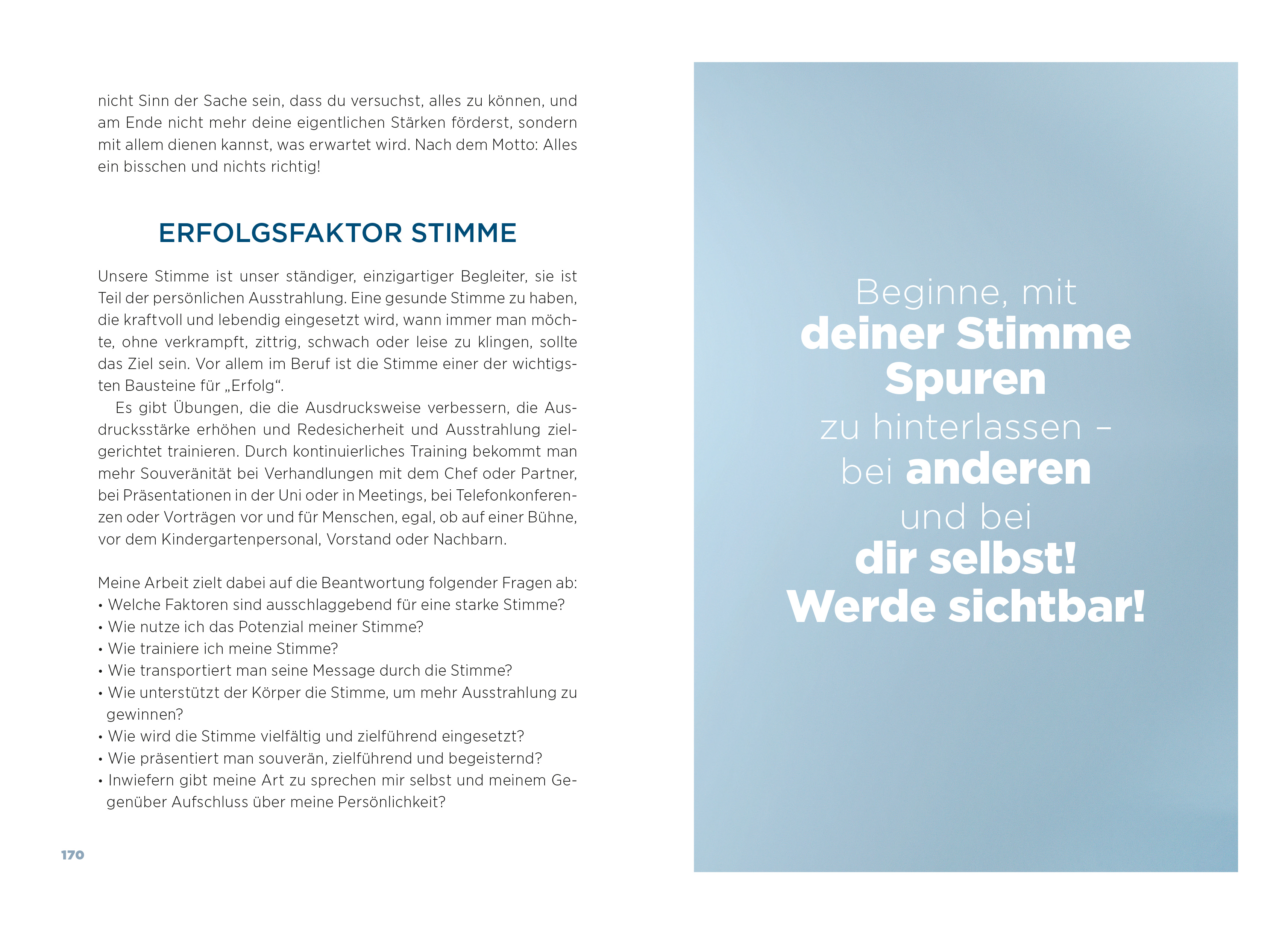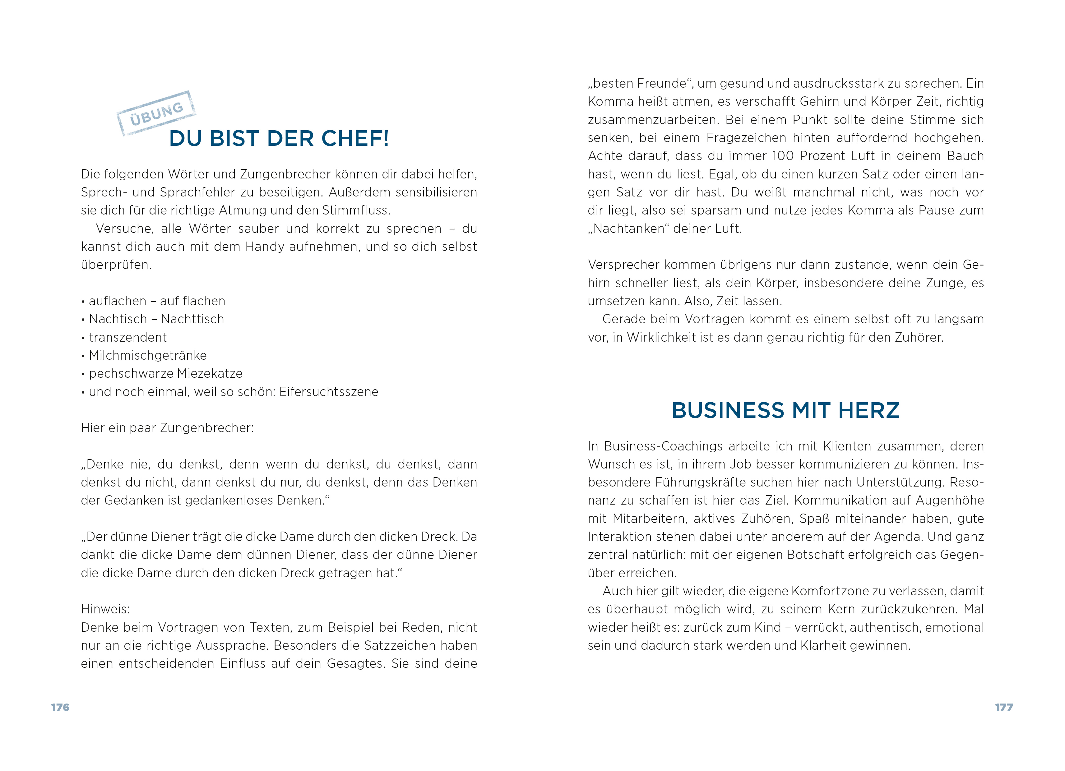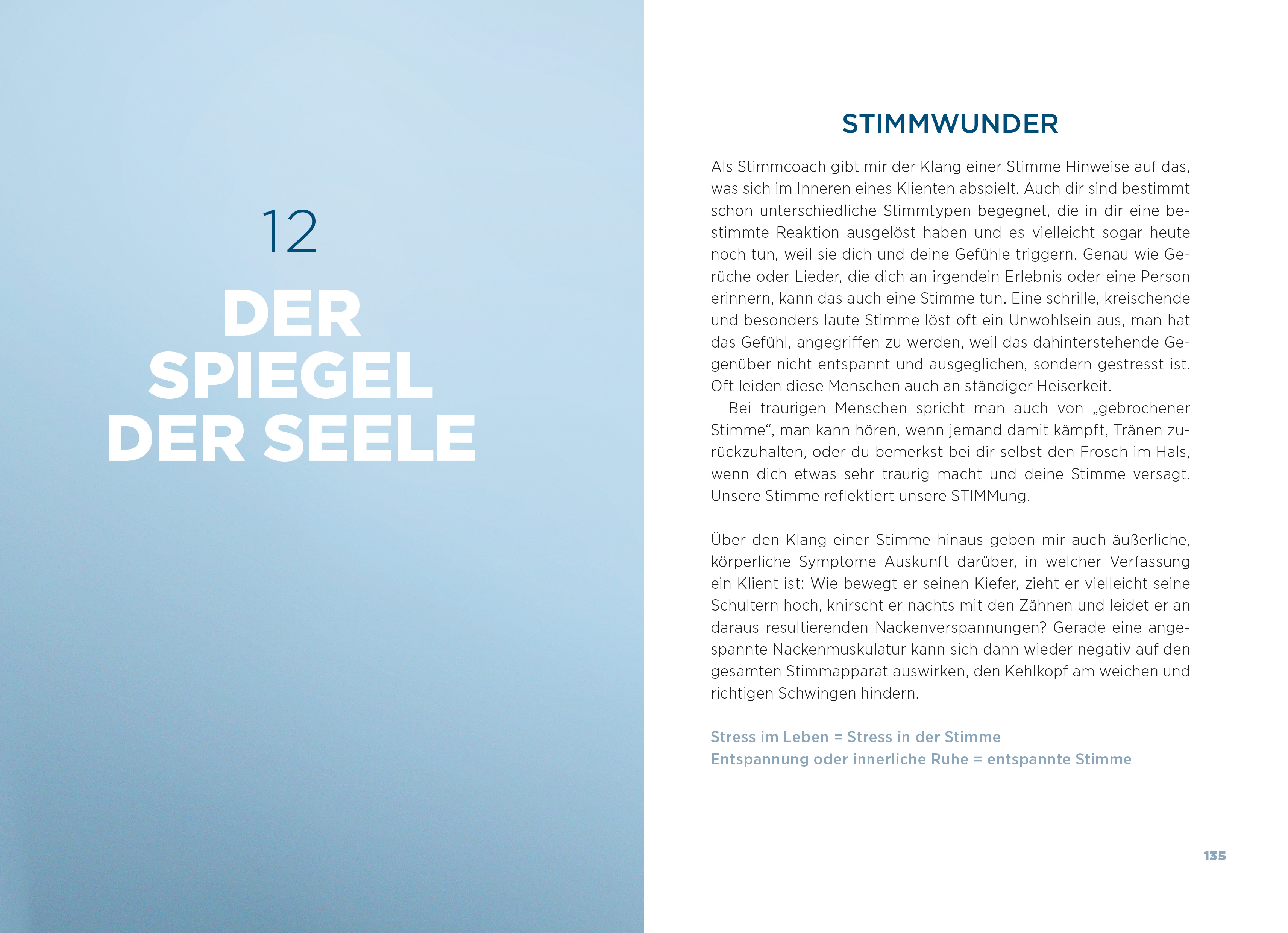 Humorvoll und zielstrebig möchte er verdeutlichen, wie viel BeSTIMMung in der Stimme steckt. Durch die Arbeit an der eigenen Stimme öffnen sich Türen zu mehr Glück, Selbstbewusstsein, Authentizität, Durchsetzungsvermögen und Selbsterkenntnis. Gerrit Winter erzählt von seiner persönlichen Achterbahn des Lebens, auf der er selbst erst seine Stimme finden musste. Sein praktisches Arbeitsbuch bietet viele Stimm-, Sprech- und Atemübungen, mit denen man seine Stimme und damit auch das Selbstbewusstsein stärkt. Anders als der Coaching-Trend der Ego-Optimierer will dieses Buch sensibilisieren. Es sagt dem Nicht-Gehört- und Übersehen-Werden den Kampf an!