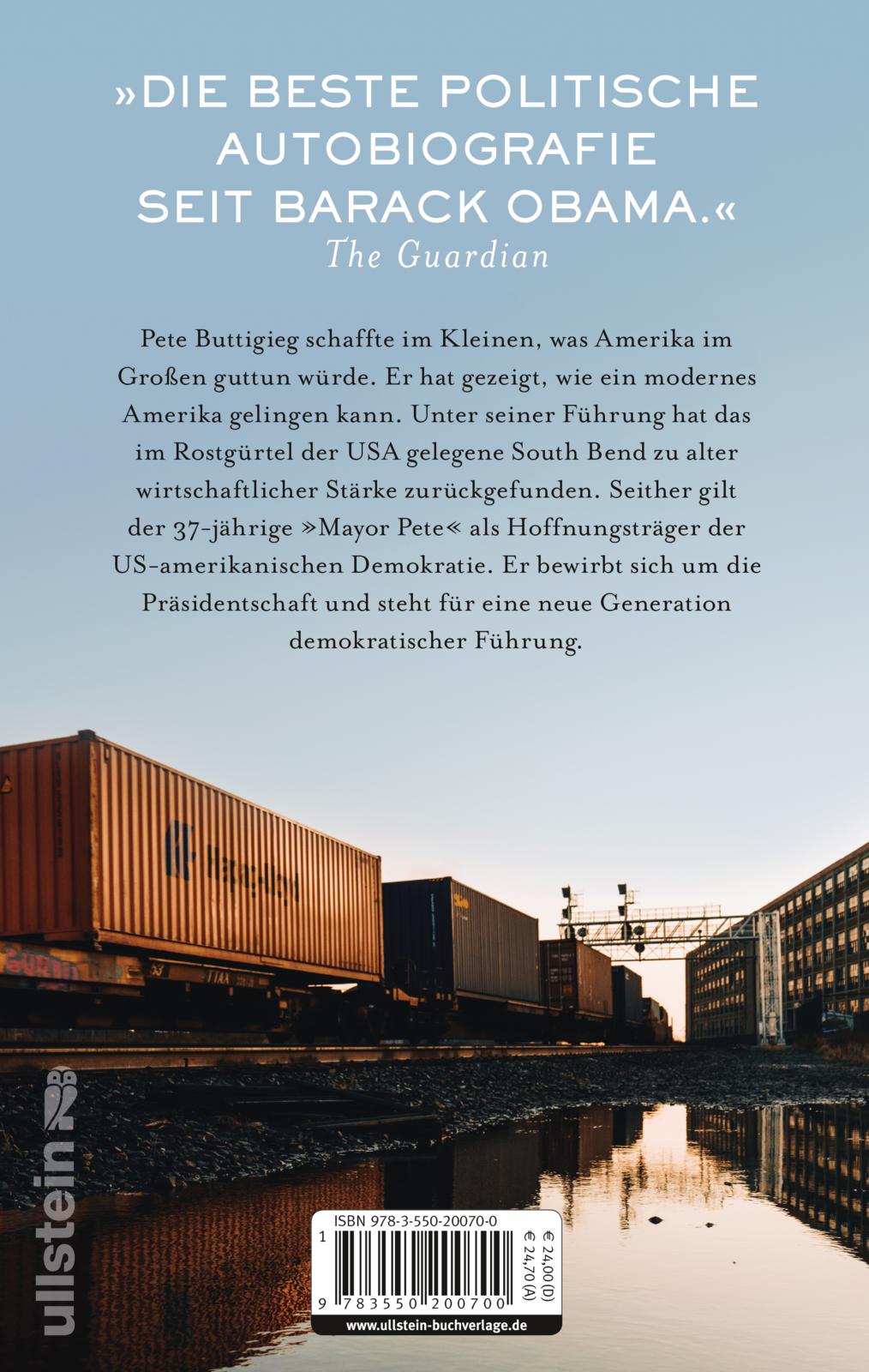 Als Afghanistan-Veteran und Bürgermeister einer kleinen, aufstrebenden Stadt gilt er als Gegenentwurf zur politischen Klasse, die den Kontakt zur Basis verloren hat. In seinem Buch erzählt er vom Aufwachsen zwischen verfallenen Industriegebäuden, von der Bedeutung der Bildung und seinem Coming-out in einer konservativ geprägten Region. Buttigieg studierte in Harvard und Oxford und arbeitete als Berater bei McKinsey. Ihm stand eine glänzende Karriere in der Wirtschaft bevor, aber er kehrte in seine Heimatstadt zurück und wurde mit 29 Jahren zum jüngsten Bürgermeister der US-Geschichte gewählt. Die Anforderungen waren gewaltig. Er schuf zahlreiche neue Arbeitsplätze und wappnete South Bend für die Herausforderungen des 21. Jahrhunderts. Er gilt als Hoffnungsträger der amerikanischen Demokratie.