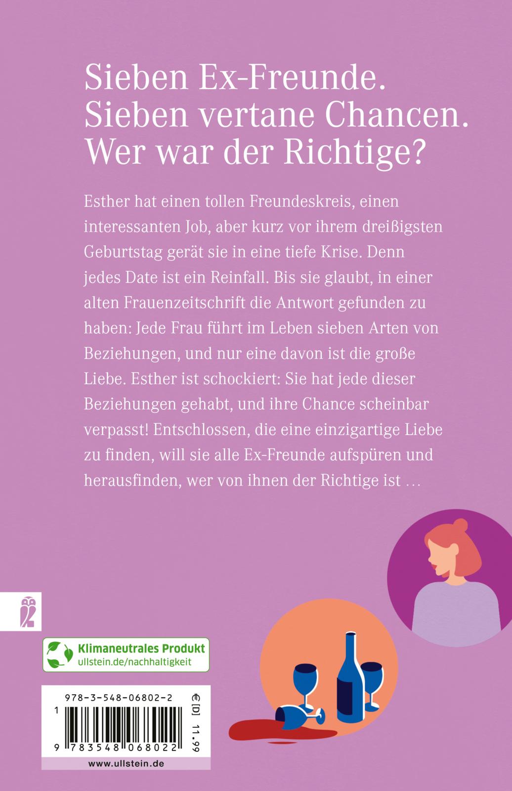 Esther hat einen tollen Freundeskreis, einen interessanten Job, aber kurz vor ihrem dreißigsten Geburtstag gerät sie in eine tiefe Krise. Denn jedes Date ist ein Reinfall. Einzig ihre beiden Freundinnen wissen Abhilfe: Sich schon tagsüber mit reichlich Roséwein betrinken. Dabei stoßen sie auf eine alte Cosmour, Bibel aller Frauen, in der steht: Jede Frau führt im Leben sieben Arten von Beziehungen, und nur eine davon ist die große Liebe. Esther ist schockiert: Sie hat all diese Beziehungen geführt und ihre Chance verpasst! Entschlossen, die Liebe zu finden, schließt sie mit ihren besten Freundinnen einen Pakt. Sie wird alle Exfreunde aufspüren und herausfinden, wer von ihnen der Richtige ist …