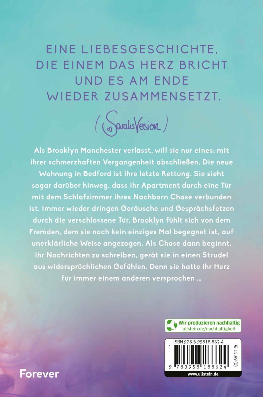 Als Brooklyn Manchester verlässt, will sie nur eines: mit ihrer schmerzhaften Vergangenheit abschließen und den Tod ihrer großen Liebe verarbeiten. Die neue Wohnung in Bedford ist ihre letzte Rettung. Sie sieht sogar darüber hinweg, dass ihr Apartment durch eine Tür mit dem Schlafzimmer ihres Nachbarn Chase verbunden ist. Immer wieder dringen Geräusche und Gesprächsfetzen durch die verschlossene Tür, und Brooklyn erfährt viel über Chase. Sie fühlt sich von dem Fremden, dem sie noch kein einziges Mal begegnet ist, auf unerklärliche Weise angezogen. Als Chase dann beginnt, ihr Nachrichten zu schreiben und ihr auf dem Klavier ihr Lieblingsstück vorzuspielen, gerät Brooklyn in einen Strudel aus widersprüchlichen Gefühlen: In ihr kämpft die Anziehung zu einem Fremden mit ihrem eigenen Widerstand. Denn sie hatte ihr Herz für immer einem anderen versprochen …
