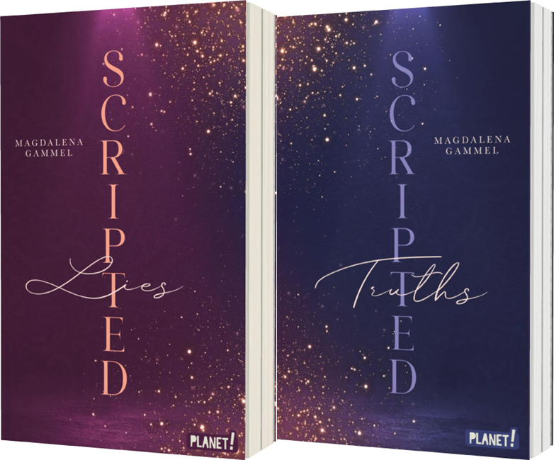 - Beschreibung Das Sparpaket enthält folgende Produkte:Scripted 1: Lies (Mängelexemplar) **Veredelte Klappenbroschur mit schimmernder Goldfolie**Zwei Männer, ein Geheimnis – und eine Wahrheit, die alles verändert.Ein fesselnder Mix aus Glamour, Gefahr und großen Gefühlen. Hollywood – der Ort, an dem Träume wahr werden.Eigentlich soll der letzte Film der gefeierten Drehbuchautorin Rosaly Everson für Indigo der Durchbruch als Schauspielerin sein. Stattdessen wird sie mit einer verstörenden Nachricht auf der Beerdigung ihrer Mutter konfrontiert – von zwei Fremden, die verdächtig gut aussehen … und zu viel wissen. Kurz darauf landet ein Brief bei ihr, der Rätsel über die Vergangenheit ihrer Mutter aufwirft.Am Filmset trifft Indigo die beiden Männer wieder: Avian und Julius – gefeierte Newcomer mit geheimnisvoller Ausstrahlung. Und gefährlich gut darin, Indigos Herz durcheinanderzubringen. Doch je näher sie ihnen kommt, desto tiefer verstrickt sie sich in ein Netz aus Lügen, Verrat und Leidenschaft. Und bald stellt sich die Frage: Wem kann Indigo überhaupt noch trauen?Ein prickelnder Romantic-Thrill voller Secrets, Glamour und Heartbeat-Momenten. Für Fans von Enemies-to-Lovers, Why Choose & düsteren Familiengeheimnissen.#Enemies to Lovers #Mystery Romance #Romantic Suspense #Why Choose Romance #Hollywood Romance #New Adult #Romantic Thrill #SecretIdentity»Unterhaltsam, spannend, mit einer Prise Hollywood - Scripted Lies hat mich überrascht & von der ersten Seite an neugierig gemacht!«Spiegel-Bestseller-Autorin Carolin WahlAlle Bände der Romance-Dilogie von Magdalena Gammel im Planet!-Verlag:Scripted LiesScripted Truths Scripted 2: Truths (Mängelexemplar)Der Morgen ist für niemanden gewiss.Nachdem Julius und Avian ihr das Herz gebrochen haben, will sich Indigo ganz auf den Film konzentrieren. Auch wenn jede Szene mit Avian und Julius ihre Gefühle auf eine harte Probe stellt. Und dann sind da noch die Geheimnisse ihrer verstorbenen Mutter. Je tiefer Indigo gräbt, desto näher kommt sie der Wahrheit. Dabei bringen ihre Nachforschungen nicht nur sie, sondern auch die beiden Männer, die sie nicht loslassen kann, in Gefahr. Denn es gibt jemanden aus der Vergangenheit ihrer Mutter, der vor nichts zurückschreckt, um sie aus dem Weg zu räumen …Ein Buch wie ein Rausch – das heiß ersehnte Finale der Hollywood-Romance mit Why Choose-Trope!Spannend, unvorsehbar und atemlos. Perfekt für alle, die Romantic Suspense und unnahbare Bad Boys lieben.Alle Bände der New Adult Romance-Dilogie im Planet!-Verlag:Scripted – LiesScripted – Truths Hinweis: Farbschnitt nur in limitierter Auflage vorrätig. Sobald alle Exemplare mit Farbschnitt ausverkauft sind, liefern wir das Buch ohne Farbschnitt. Die Retoure einzelner Titel aus dem Sparpaket ist nicht möglich. Nur das gesamte Sparpaket kann retourniert werden.