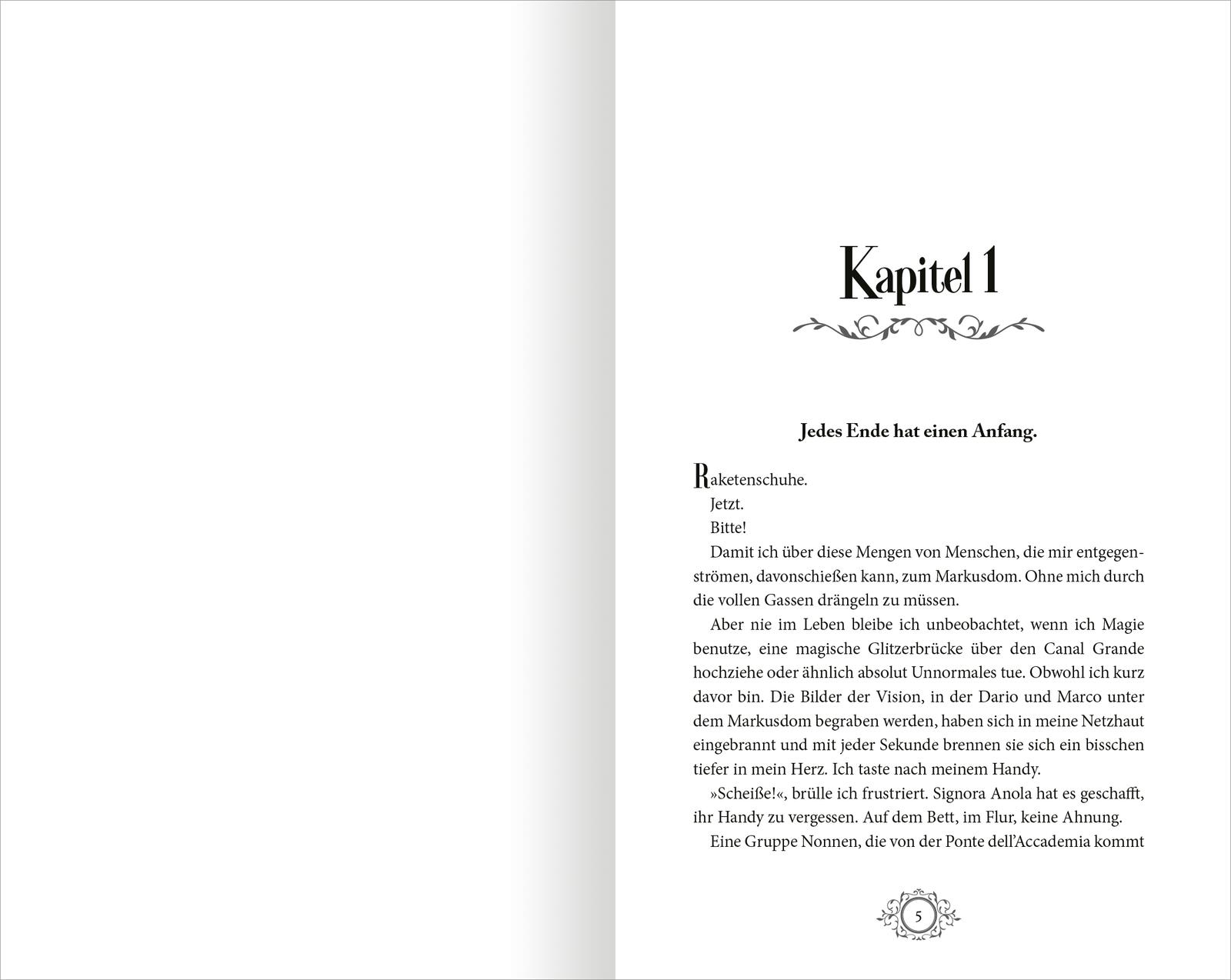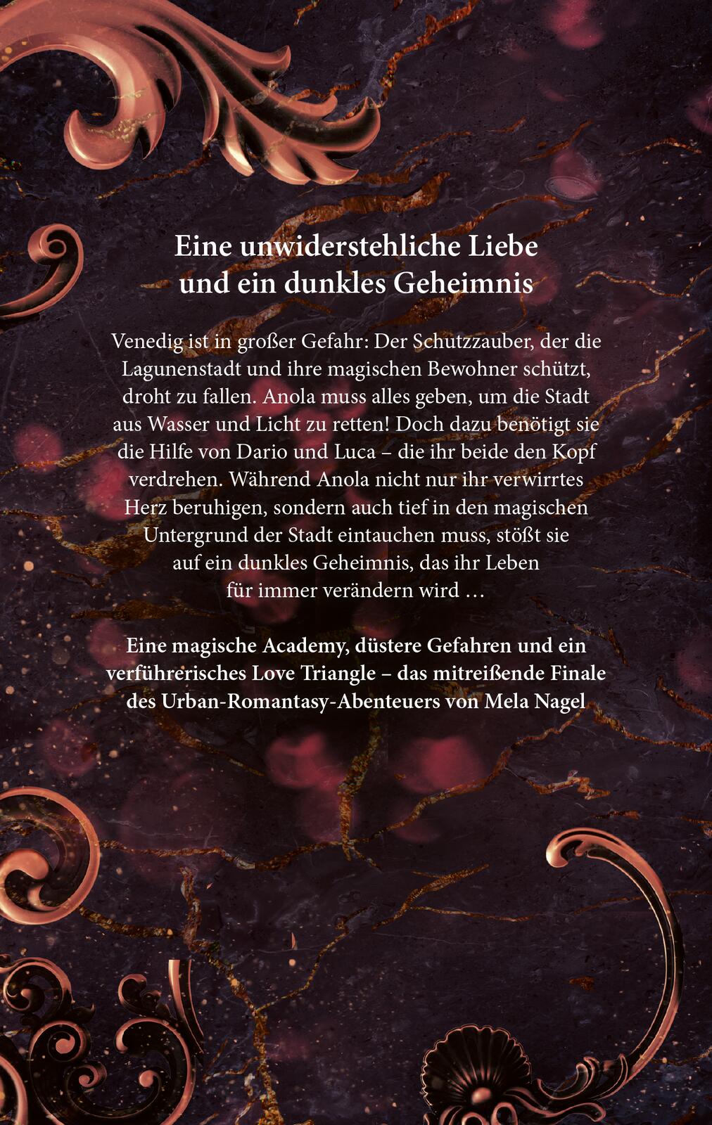 Venedig ist in großer Gefahr: Der Schutzzauber, der die Lagunenstadt und ihre magischen Bewohner schützt, droht zu fallen. Anola muss alles geben, um die Stadt aus Wasser und Licht zu retten! Doch dazu benötigt sie die Hilfe von Dario und Luca – die ihr beide den Kopf verdrehen. Während Anola nicht nur ihr verwirrtes Herz beruhigen, sondern auch tief in den magischen Untergrund der Stadt eintauchen muss, stößt sie auf ein dunkles Geheimnis, das ihr Leben für immer verändern wird …