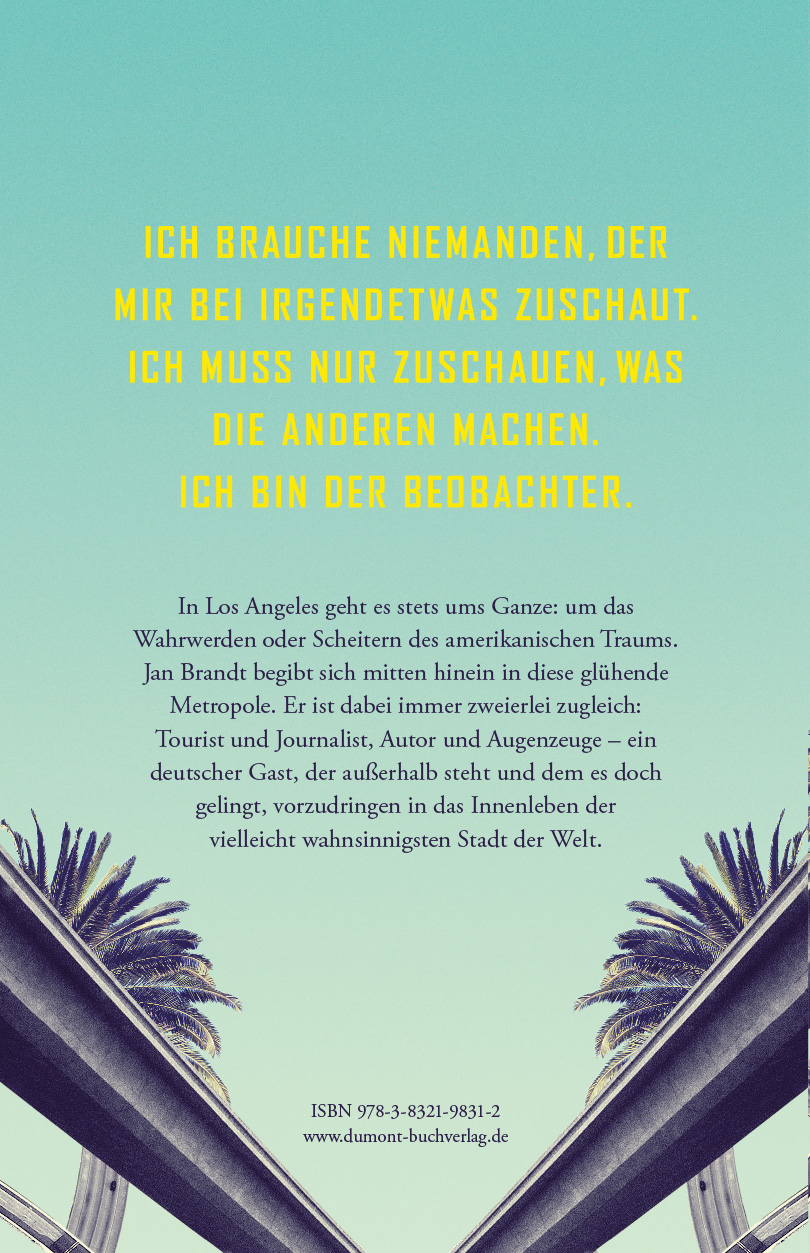 Die Stadt der Engel, des Wahnsinns und der Träume Los Angeles ist die Stadt der erfüllten und unerfüllten Sehnsüchte. Keine Stadt der Welt ist medial so allgegenwärtig wie diese, keine produziert so viele Mythen und Legenden. Und keine kann zugleich so hart, brutal und zerstörerisch sein. Jan Brandt bringt diesen schillernden Kosmos auf unerhörte Weise zum Sprechen. Er erzählt von Menschen, denen er auf Streifzügen begegnet ist: von Neohippies bis zum Starkoch, vom Start-up-Unternehmer und einer jungen Auftragsdichterin bis zum Gangsta-Rapper. Es sind Geschichten von Glücksrittern, die versuchen, trotz aller Widerstände den amerikanischen Traum zu leben. In ›Stadt ohne Engel‹ verbinden sich literarische Reportagen mit Essays, persönliche Begegnungen und Beobachtungen mit Zeitungsartikeln. Twitter-Meldungen und Facebook-Nachrichten verschmelzen zu einem kollektiven urbanen Rauschen.
