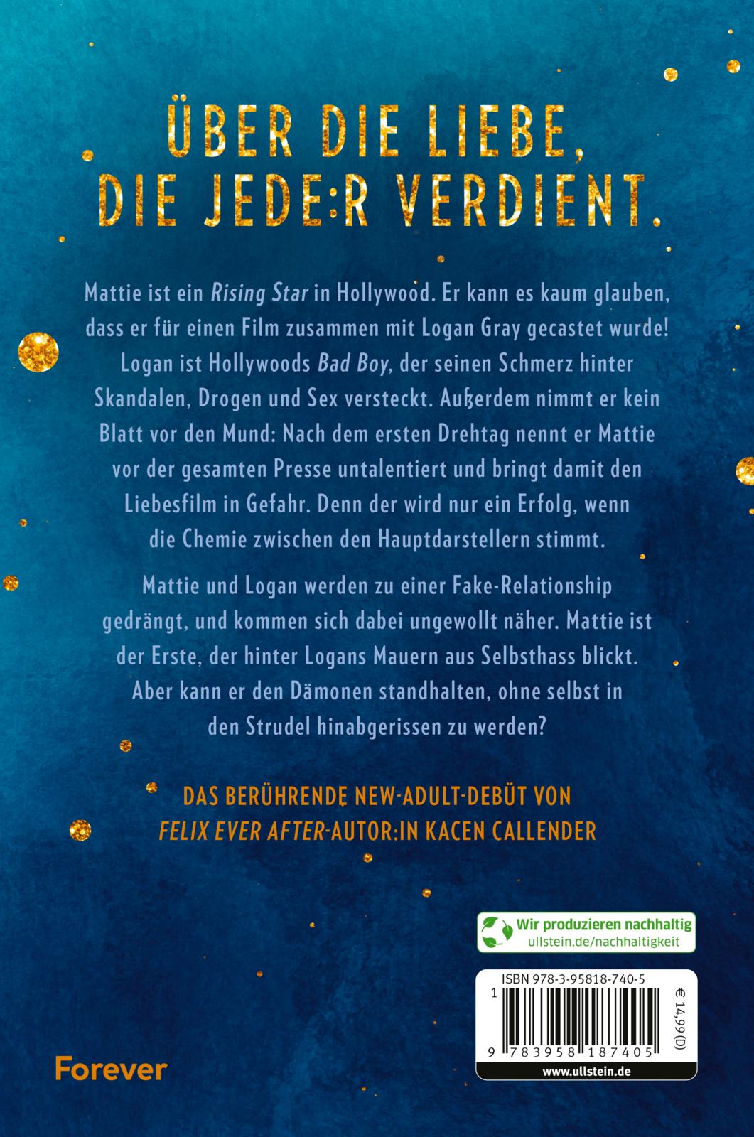 Mattie ist ein rising star in Hollywood. Er kann es kaum glauben, dass er für einen Film zusammen mit Logan Gray gecastet wurde! Logan ist Hollywoods Bad Boy, der seinen Schmerz hinter Skandalen, Drogen und Sex versteckt. Außerdem nimmt er kein Blatt vor den Mund: Nach dem ersten Drehtag nennt er Mattie vor der gesamten Presse untalentiert und bringt damit den Film in Gefahr. Denn der wird nur ein Erfolg, wenn die Chemie zwischen den Hauptdarstellern stimmt. Mattie und Logan werden zu einer Fake-Relationship gedrängt, und kommen sich dabei ungewollt näher. Mattie ist der Erste, der hinter Logans Mauern aus Selbsthass blickt. Aber kann er den Dämonen standhalten, ohne selbst in den Strudel hinabgerissen zu werden?
