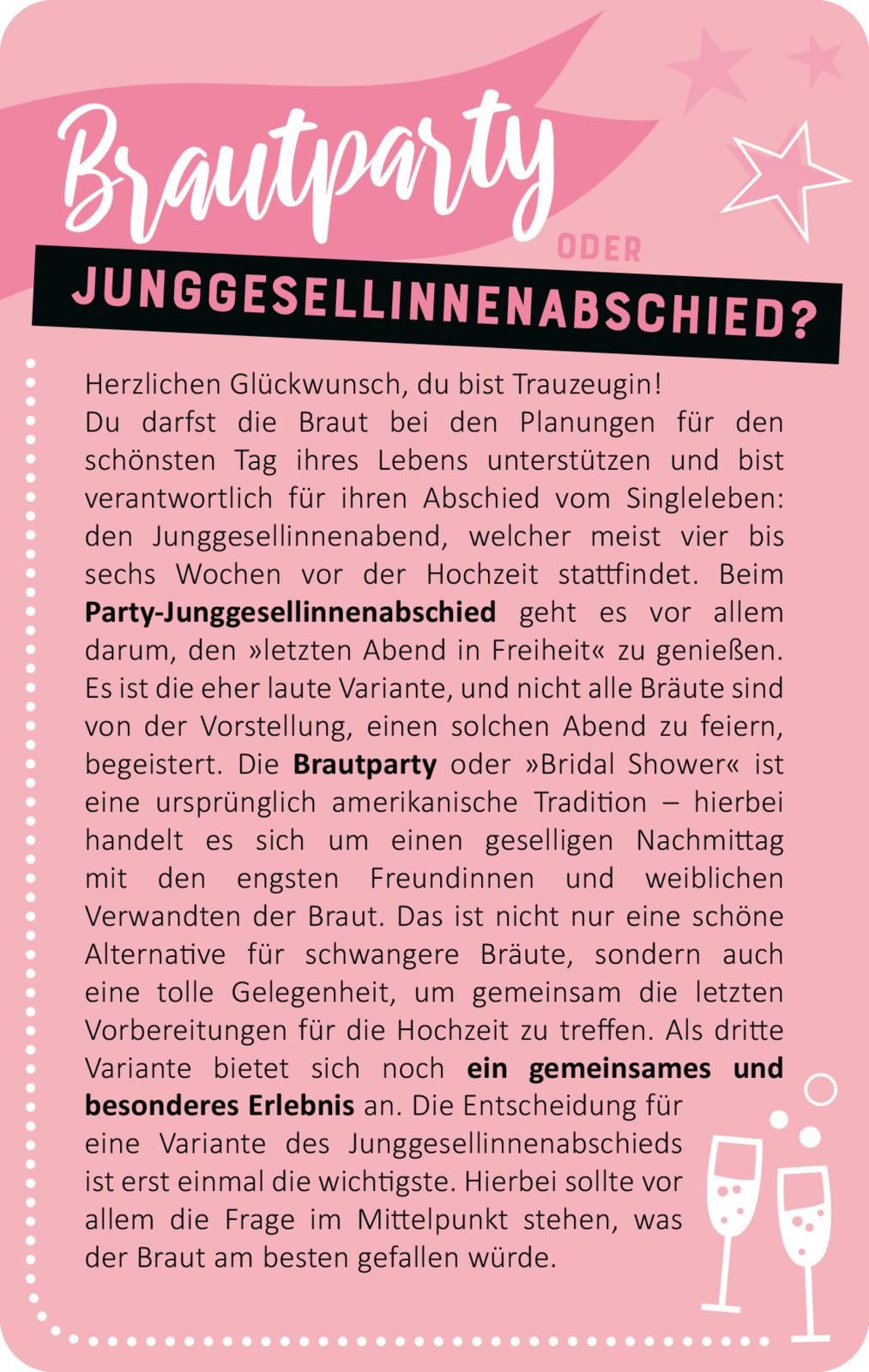 Damit die Brautparty ein richtiger Erfolg wird, bietet dir diese Kartenbox das Rundum-Sorglos-Paket.