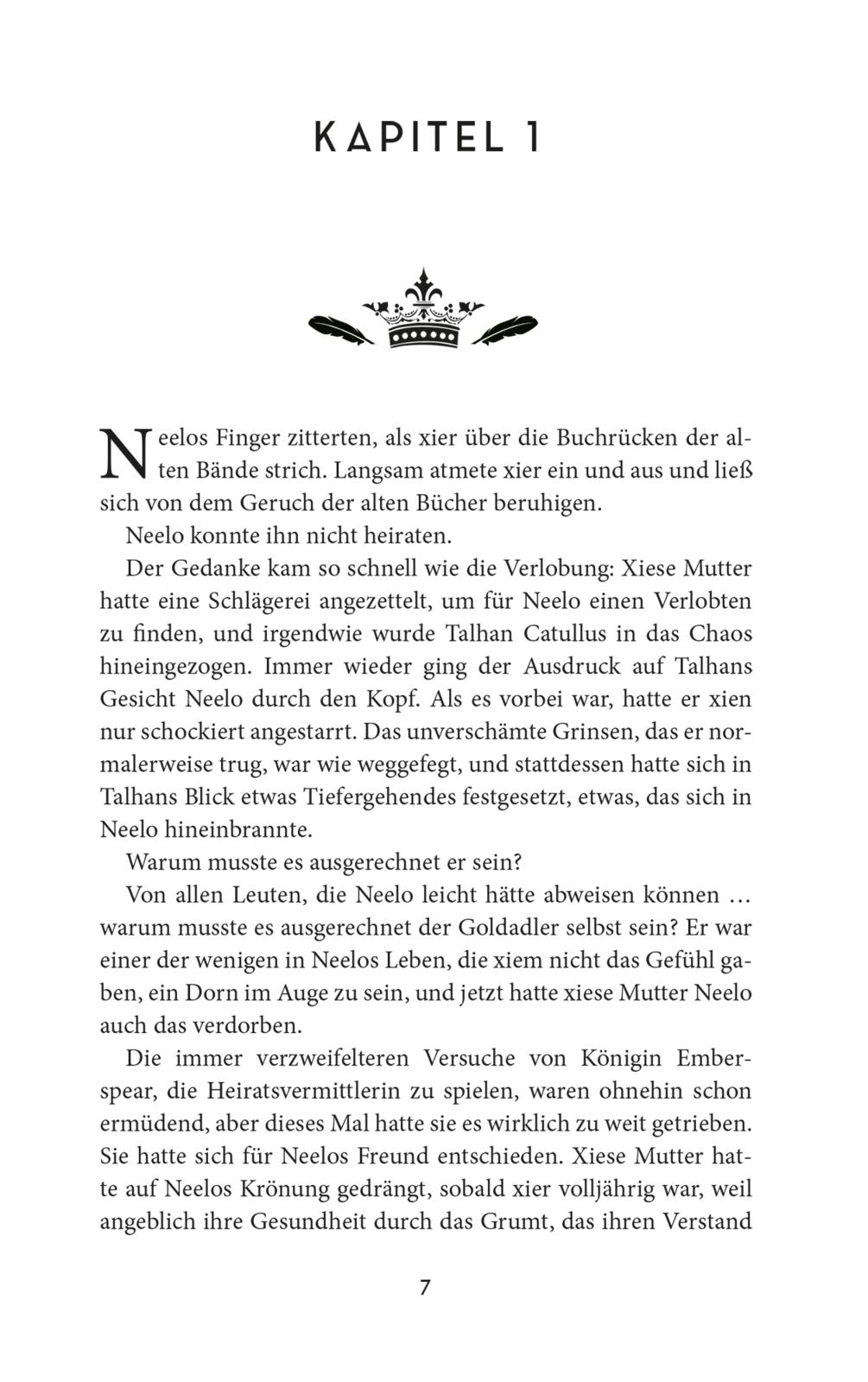 - Beschreibung Neelo Emberspear würde am liebsten für immer in der Bibliothek bleiben, statt als Thronfolger*in eine arrangierte Ehe mit dem Feenkrieger Talhan einzugehen. Doch als die Gesundheit der Königin, Neelos Mutter, sich weiter verschlechtert, kann xier die adeligen Pflichten nicht länger aufschieben. Während Neelo darum kämpft, das Leben xieser Mutter zu retten, bleiben Neelo und Talhan schriftlich in Kontakt. Wer hätte gedacht, dass die größere Distanz ungeahnte Gefühle in den beiden weckt? Wäre da nur nicht der Hexenaufstand, der den gesamten Kontinent bedroht …