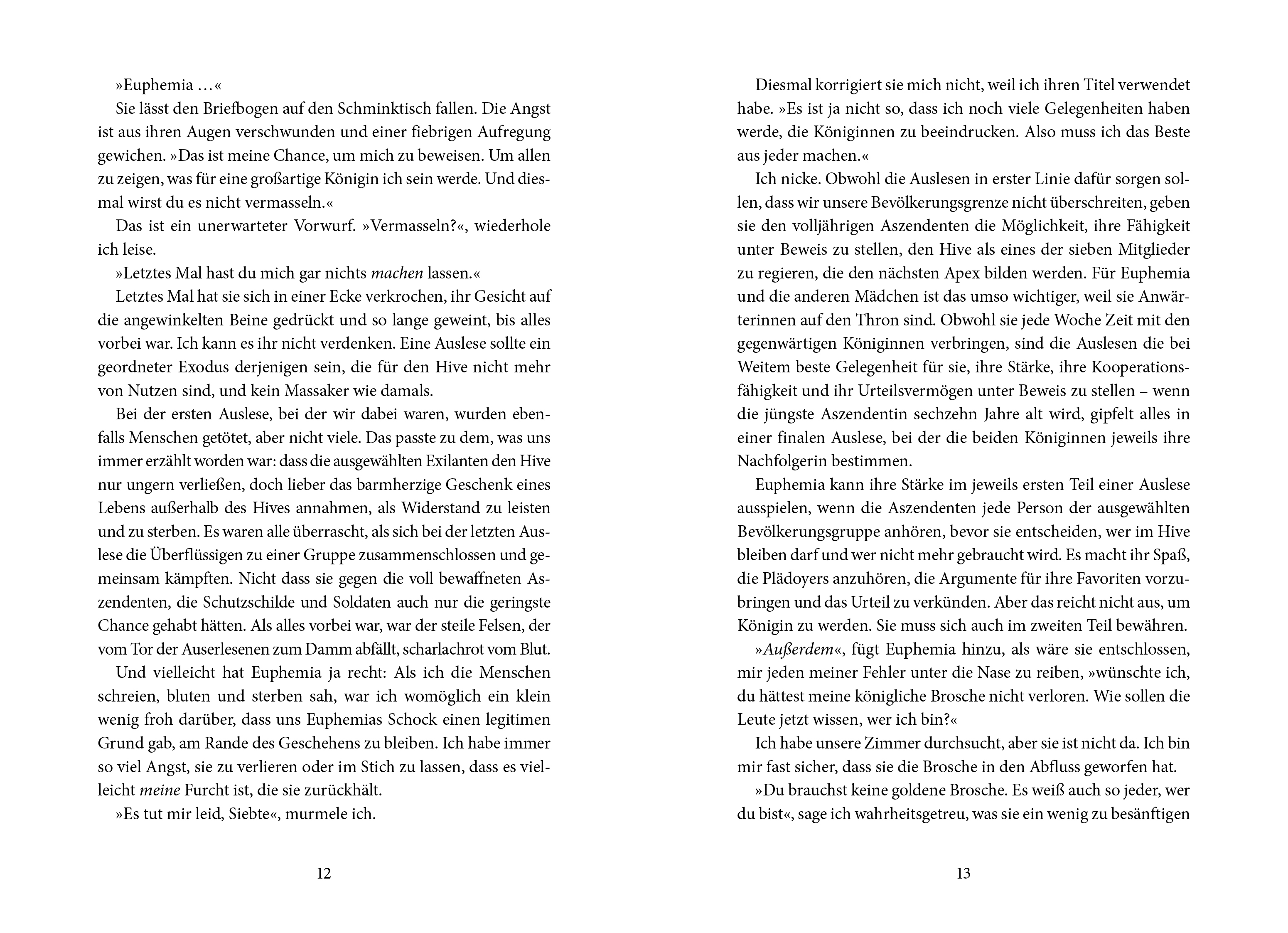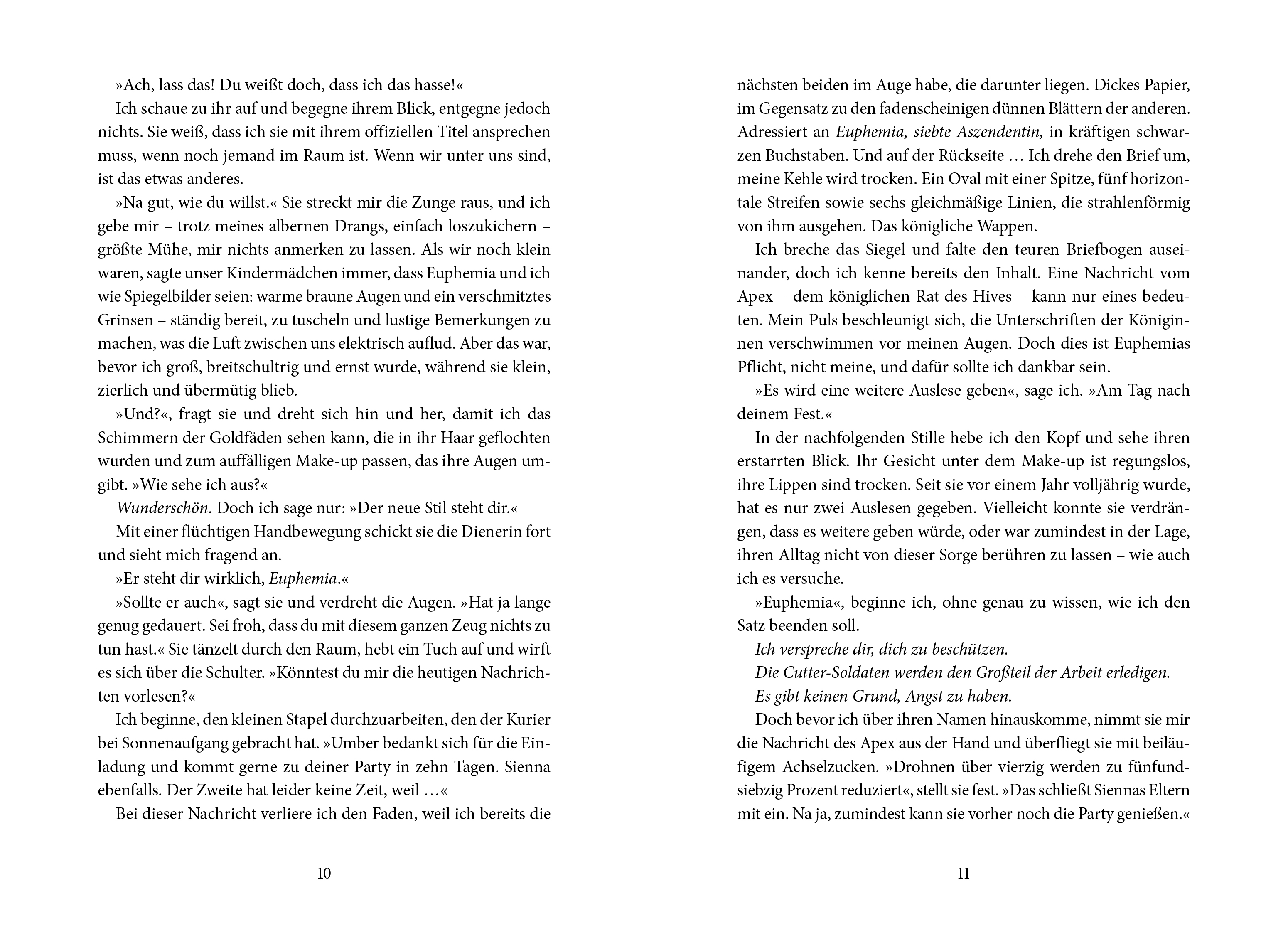 Arenite ist unschuldig und wartet dennoch auf ihre Hinrichtung. Ihr Verbrechen? Sie ist noch am Leben, während ihr Schützling tot ist – eine Tatsache, die nicht sein dürfte. Denn im Hive hat jeder seine Aufgabe, jedes Leben eine Funktion und jeder Fehler einen Preis. Gemeinsam mit Niko, einem königlichen Außenseiter, an ihrer Seite hat Arenite drei Tage Zeit, um das Unmögliche zu beweisen. Drei Tage, um alles infrage zu stellen, was sie über die Welt zu wissen glaubt, in der sie aufgewachsen ist. Drei Tage, um herauszufinden, wer der wahre Mörder ist …