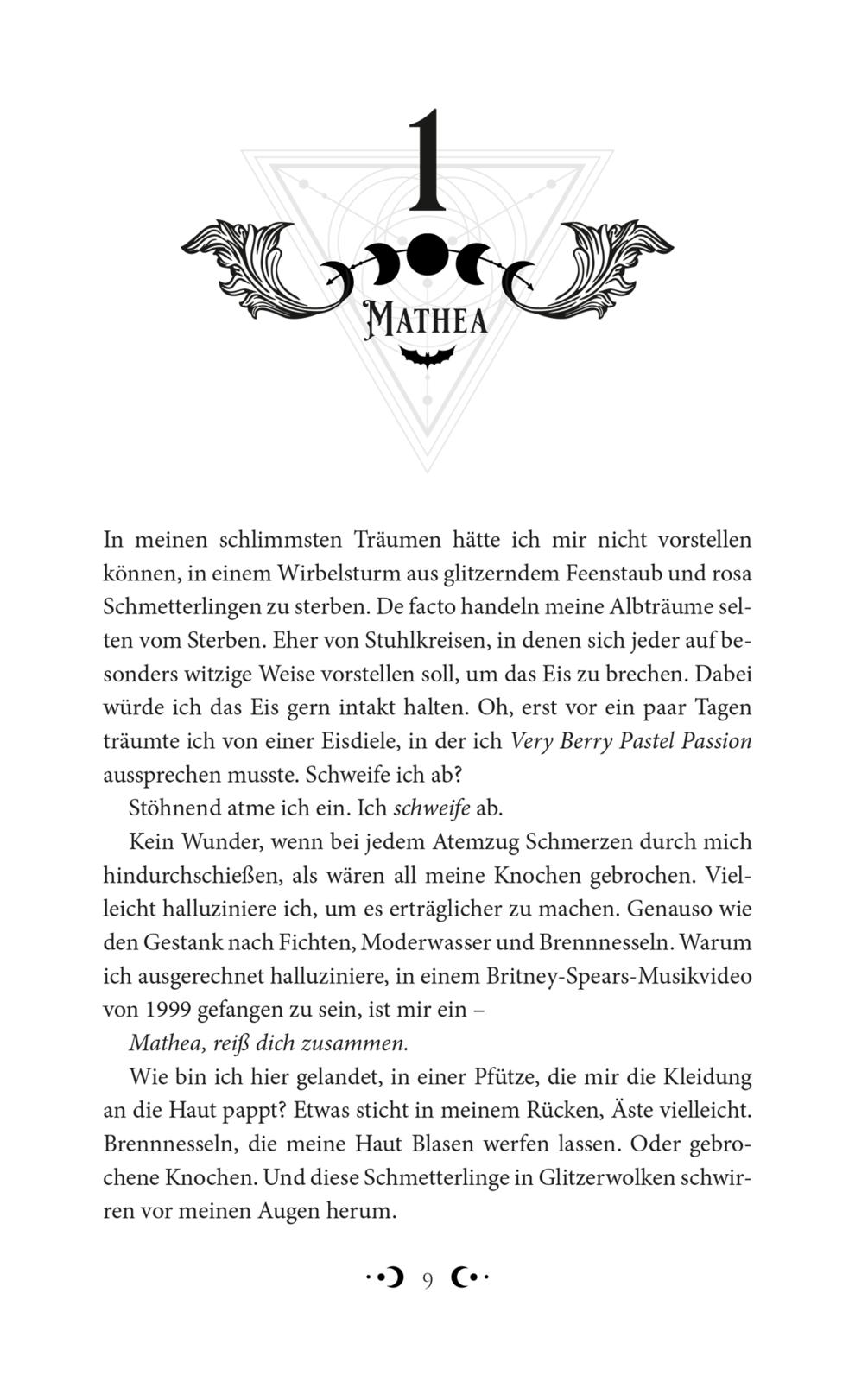 Mathea liebt Sarkasmus, Geld – und ihre Ruhe. Doch als Helle Magie in ihr erwacht, muss sie ihre geordnete Existenz als Jurastudentin aufgeben und die nervtötend harmonische Univerzita Mystika e Magie in Prag besuchen. Und als wären feministische Magier und Hippie-Nixen nicht genug, entbrennt zum so begabten wie hochmütigen Warlock Atlas eine unwiderstehliche Rivalität. Der Haken: Er gehört zur verfeindeten Academia Sinistra. Dort versucht sich wiederum die Hexe Ellie ihren Platz zu erkämpfen, obwohl sie sich eigentlich nur von alldem fort wünscht – wäre da nicht Astra, dank der sie ihre übermächtigen Kräfte zu verstehen beginnt. Als an einer der beiden Akademien ein Fluch entdeckt wird, müssen die vier zusammenarbeiten. Doch was, wenn die Feindschaft zwischen Schatten und Licht niemals überwunden werden kann?