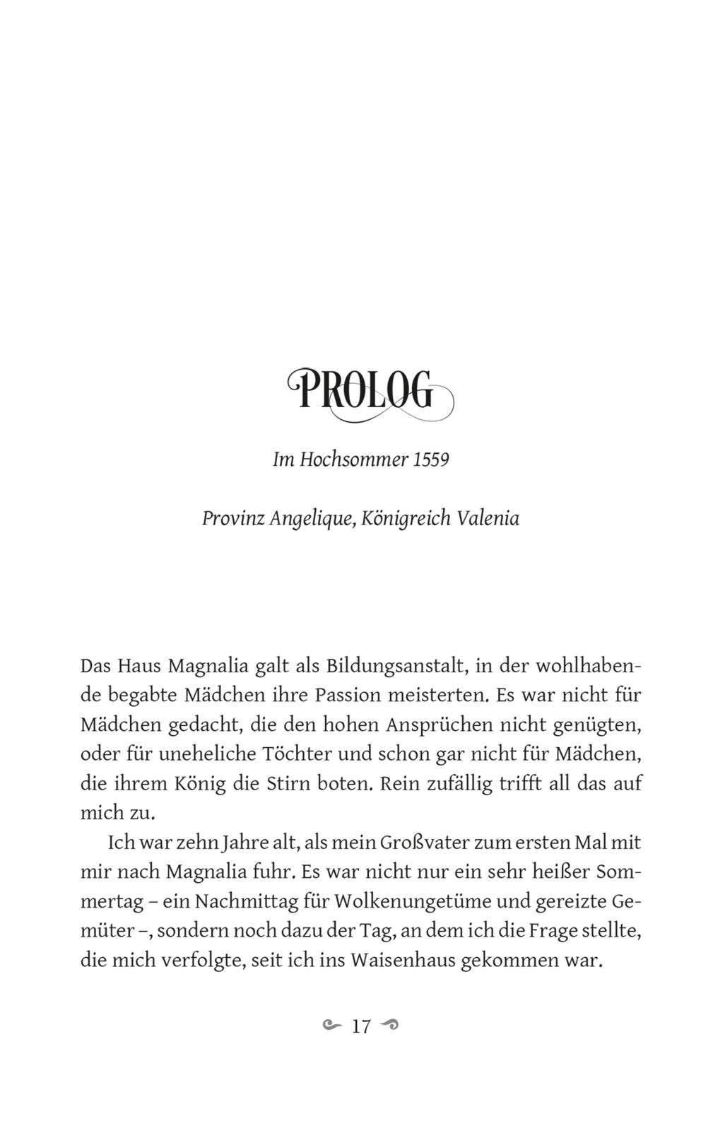Brienna will nach abgeschlossener Ausbildung im Haus Magnalia ihre besondere Gabe erproben und eine Aufgabe an einem der Höfe bekommen. Gleichzeitig zerreißt es ihr das Herz, ihren geheimnisvollen Lehrer Master Cartier zurückzulassen. An den Höfen des Reiches gerät sie in ein Netz aus Intrigen um den Thron. Und auch Cartier trifft sie wieder ...