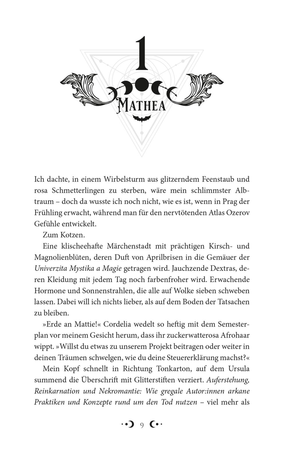 Mit dem neuen Semester tauchen Mathea und Ellie tiefer in die Welten der Hellen und Dunklen Magie ein. Unterstützung erfahren sie durch Atlas und Astra, allerdings geraten ihre Gefühlswelten ordentlich durcheinander. All das rückt aber in den Hintergrund, als eine mörderische Geheimloge Jagd auf Mathea macht. Der seltsame Fluch war erst der Anfang – und die düsteren Absichten der Loge stehen und fallen mit der magischen Verbindung zwischen Mathea und Ellie. Sollten sie das Netz aus Intrigen und den Geheimnissen der Vergangenheit nicht lösen, steht deutlich mehr auf dem Spiel als ihr Leben.
