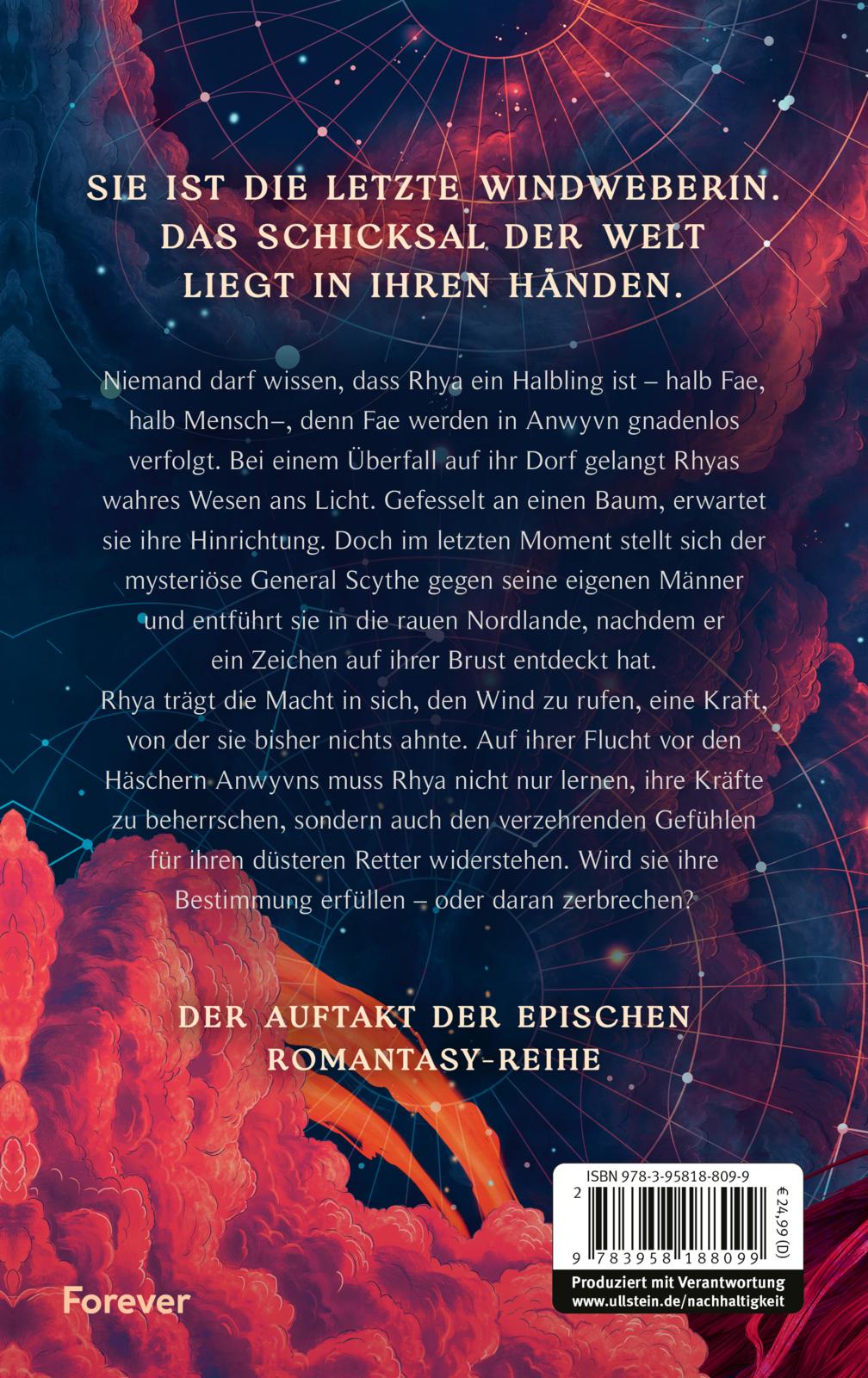 Rhya trägt die Macht in sich, den Wind zu rufen, eine Kraft, von der sie bisher nichts ahnte. Auf ihrer Flucht vor den Häschern Anwyvns muss Rhya nicht nur lernen, ihre Kräfte zu beherrschen, sondern auch den verzehrenden Gefühlen für ihren düsteren Retter widerstehen. Wird sie ihre Bestimmung erfüllen – oder daran zerbrechen?