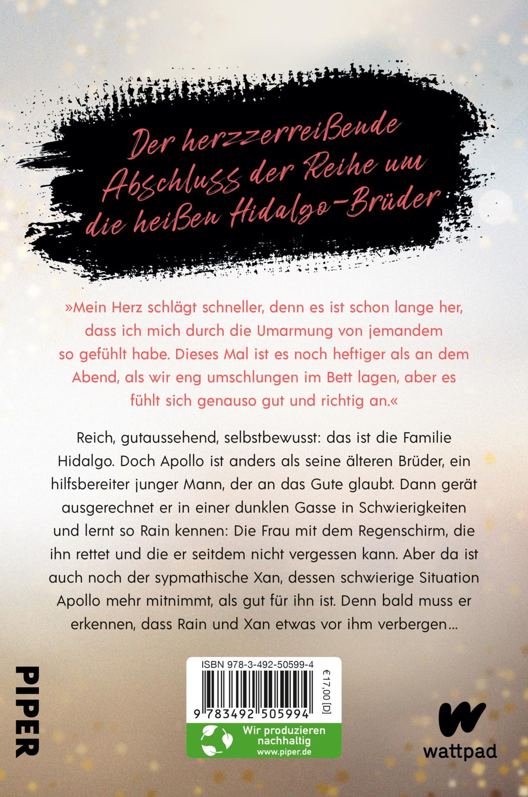 Reich, gutaussehend, selbstbewusst: das ist die Familie Hidalgo. Doch Apollo ist anders als seine älteren Brüder, ein hilfsbereiter junger Mann, der an das Gute glaubt. Ausgerechnet er gerät in einer dunklen Gasse in Schwierigkeiten, und dort lernt er sie kennen: Rain. Die Frau mit dem Regenschirm, die ihn rettet und die er seitdem nicht vergessen kann. Aber da ist auch noch der sympathische Xan, dessen schwierige Situation Apollo mehr mitnimmt, als gut für ihn ist. Denn bald muss er erkennen, dass Rain und Xan etwas vor ihm verbergen ...