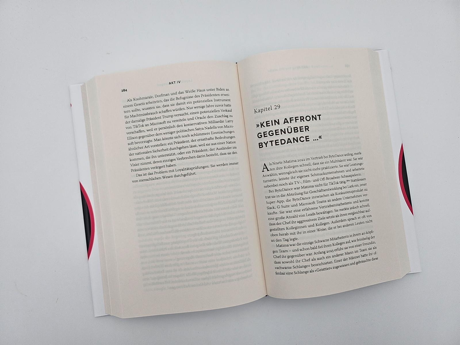 Die Forbes-Investigativjournalistin Emily Baker-White erzählt die Geschichte des kometenhaften Aufstiegs der App TikTok, die seit ihrem offiziellen Launch im Jahr 2018 die Social-Media-Welt revolutionierte, Popkultur und Öffentlichkeit weltweit veränderte, und bereits mehr als 1,6 Milliarden User in über 150 Ländern aufweist. Baker-Whites Buch besteht aus den Enthüllungen ihrer spektakulären Investigativreche, die mit exklusiven Informationen von über 100 TikTok-Insidern die engen Verbindungen des chinesischen Staats zum TikTok-Konzern aufdeckt. Spannend wie ein Thriller enthüllt Baker-White Machtmissbrauch, Datenschutzverletzungen und mutmaßliche Algorithmus-Manipulationen bei TikTok –, bis sie und andere Journalisten bedrohlicherweise selbst ins Fadenkreuz des chinesischen TikTok-Mutterkonzerns ByteDance geraten.